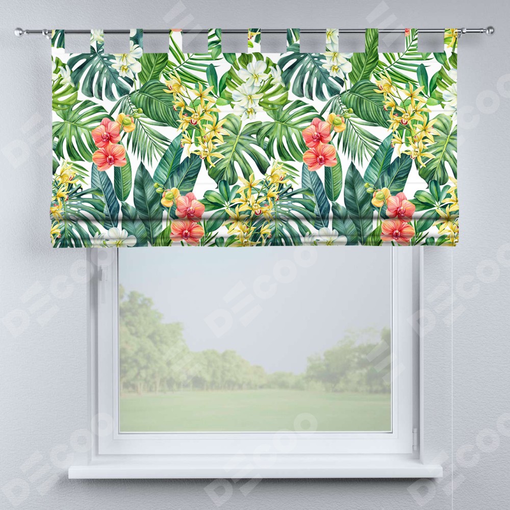 Римская штора производителя «Cortin», используется для проёма, пошита из ткани блэкаут с нанесением сублимационной печати «Орхидеи в тропиках». Данная модель пошита на петлях, комплектуется на выбор круглым карнизом и подходит для монтажа на стену. Римская штора на петлях имеет простую систему регулировки высоты, отличительным преимуществом данной модели является простой способ монтажа. Достаточно повесить ее на трубу и штора готова!