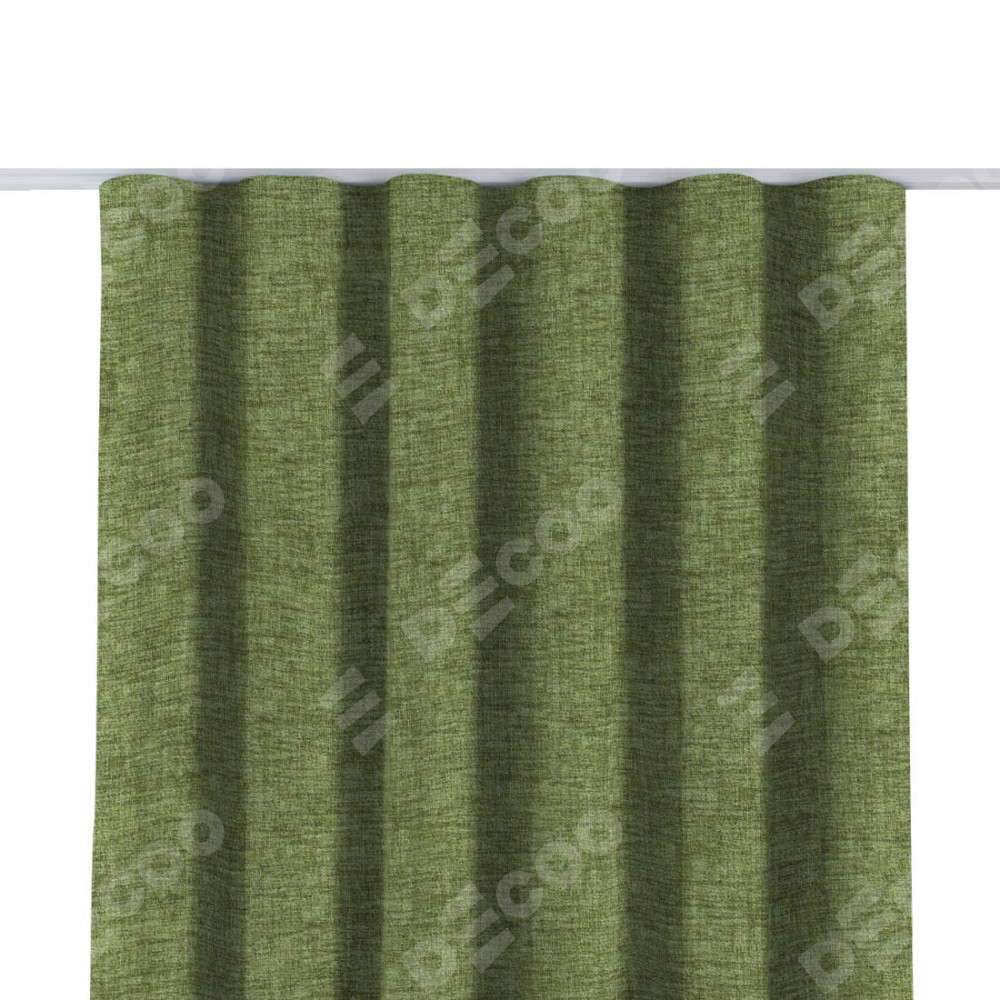 Комплект прямых штор, от производителя «Cortin», пошиты из ткани рогожка димаут травяной, артикул ткани 91021. С изнаночной стороны в верхней части штор пристрачивается шторная лента с декоративными складками «Волна». Для создания элегантных складок прямые шторы шьются по стандарту с коэффициентом 1:2 (на 100 см. ширины проёма 200 см. ширины ткани).