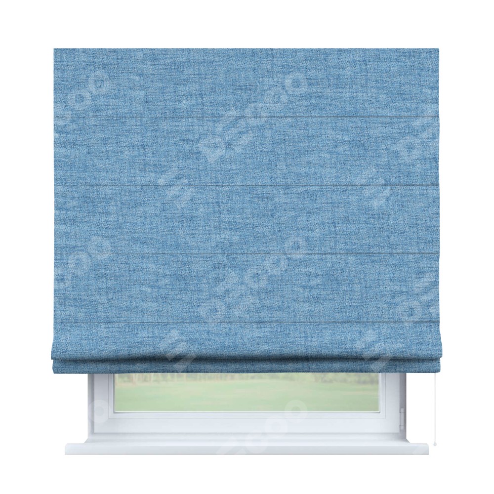 Классическая римская штора производителя «Cortin», пошита из ткани рогожка димаут голубой, артикул: 91025. Имеет универсальный механизм и подходит для монтажа: на потолок, на стену и в нишу.