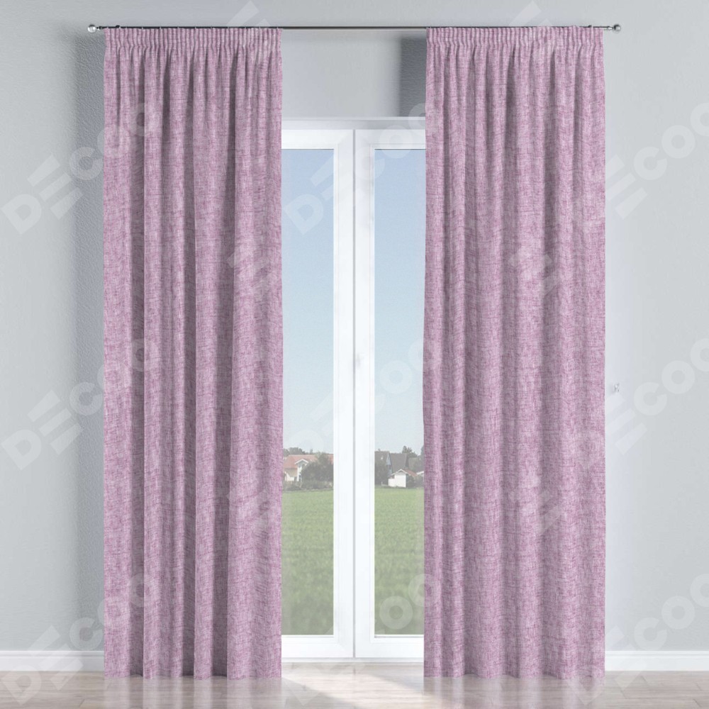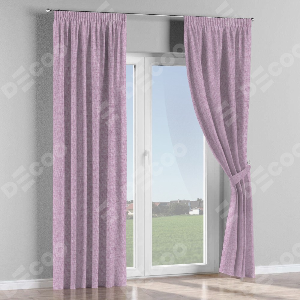 Комплект прямых штор, от производителя «Cortin», пошиты из ткани рогожка димаут розовый, артикул ткани 91031. С изнаночной стороны в верхней части штор пристрачивается шторная лента с декоративными складками «Карандаш». Для создания элегантных складок прямые шторы шьются по стандарту с коэффициентом 1:2 (на 100 см. ширины проёма 200 см. ширины ткани).