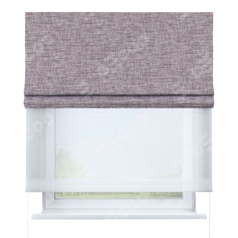 Двойная римская штора «День-ночь» от производителя Cortin предназначена для использования в проёмах. Эта штора уникальна тем, что состоит из двух полотен. На лицевой стороне находится рогожка димаут розовый кварц (артикул: 91030), обеспечивающий эффективное затемнение. В комплект также входит вторая ткань — легкий белый тюль (артикул: V-01), который добавляет изящества и легкости оформлению окна. Кроме того, доступны и другие разновидности ткани тюль, выбор которых доступен по  ссылке .