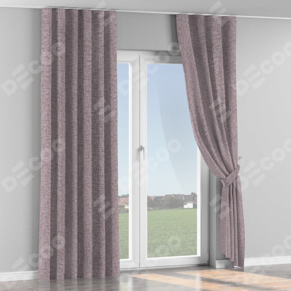 Комплект прямых штор, от производителя «Cortin», пошиты из ткани рогожка димаут розовый кварц, артикул ткани 91030. С изнаночной стороны в верхней части штор пристрачивается шторная лента с декоративными складками «Волна». Для создания элегантных складок прямые шторы шьются по стандарту с коэффициентом 1:2 (на 100 см. ширины проёма 200 см. ширины ткани).