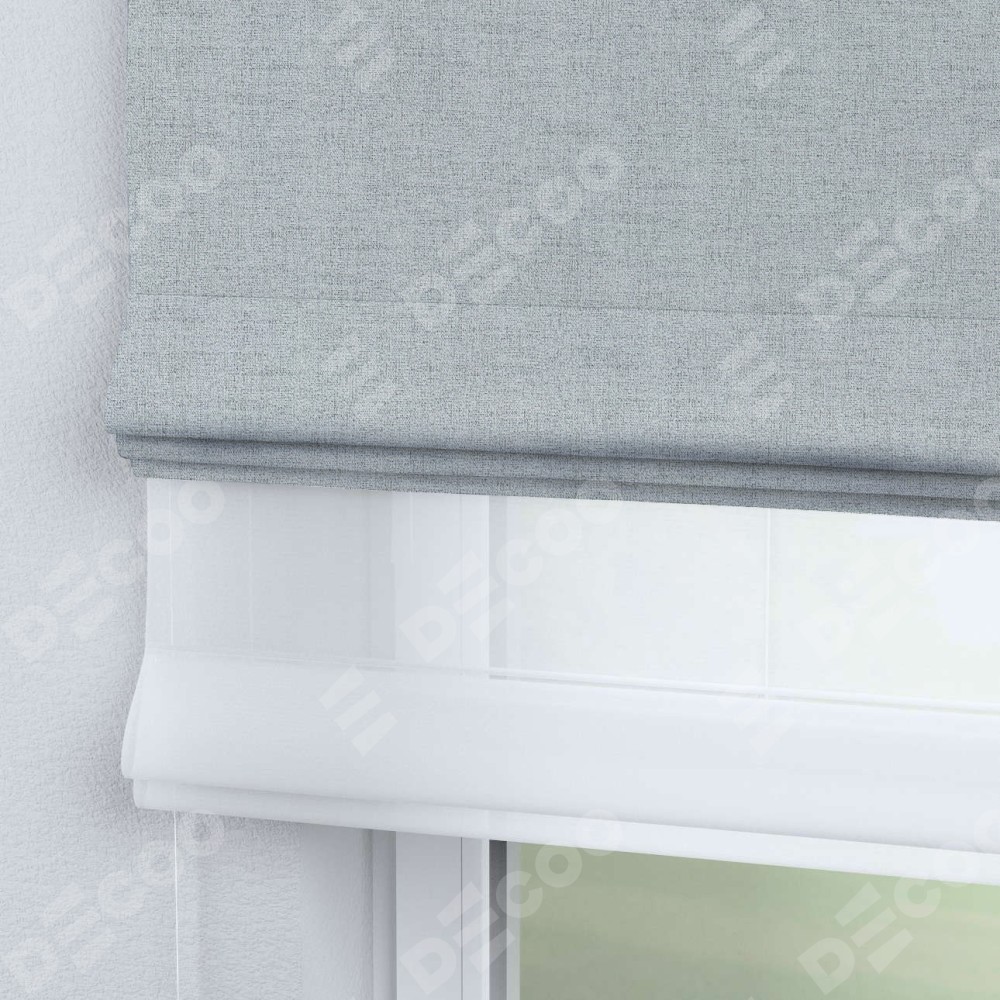 Двойная римская штора «День-ночь» от производителя Cortin предназначена для использования в проёмах. Эта штора уникальна тем, что состоит из двух полотен. На лицевой стороне находится рогожка димаут серый (артикул: 91027), обеспечивающий эффективное затемнение. В комплект также входит вторая ткань — легкий белый тюль (артикул: V-01), который добавляет изящества и легкости оформлению окна. Кроме того, доступны и другие разновидности ткани тюль, выбор которых доступен по  ссылке .