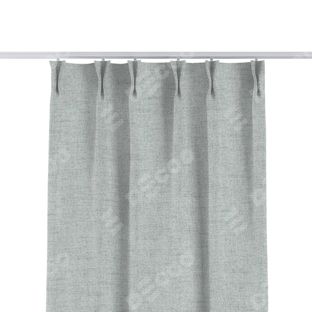 Комплект прямых штор, от производителя «Cortin», пошиты из ткани рогожка димаут серый, артикул ткани 91027. С изнаночной стороны в верхней части штор пристрачивается шторная лента с декоративными складками «Кустик». Для создания элегантных складок прямые шторы шьются по стандарту с коэффициентом 1:2 (на 100 см. ширины проёма 200 см. ширины ткани).