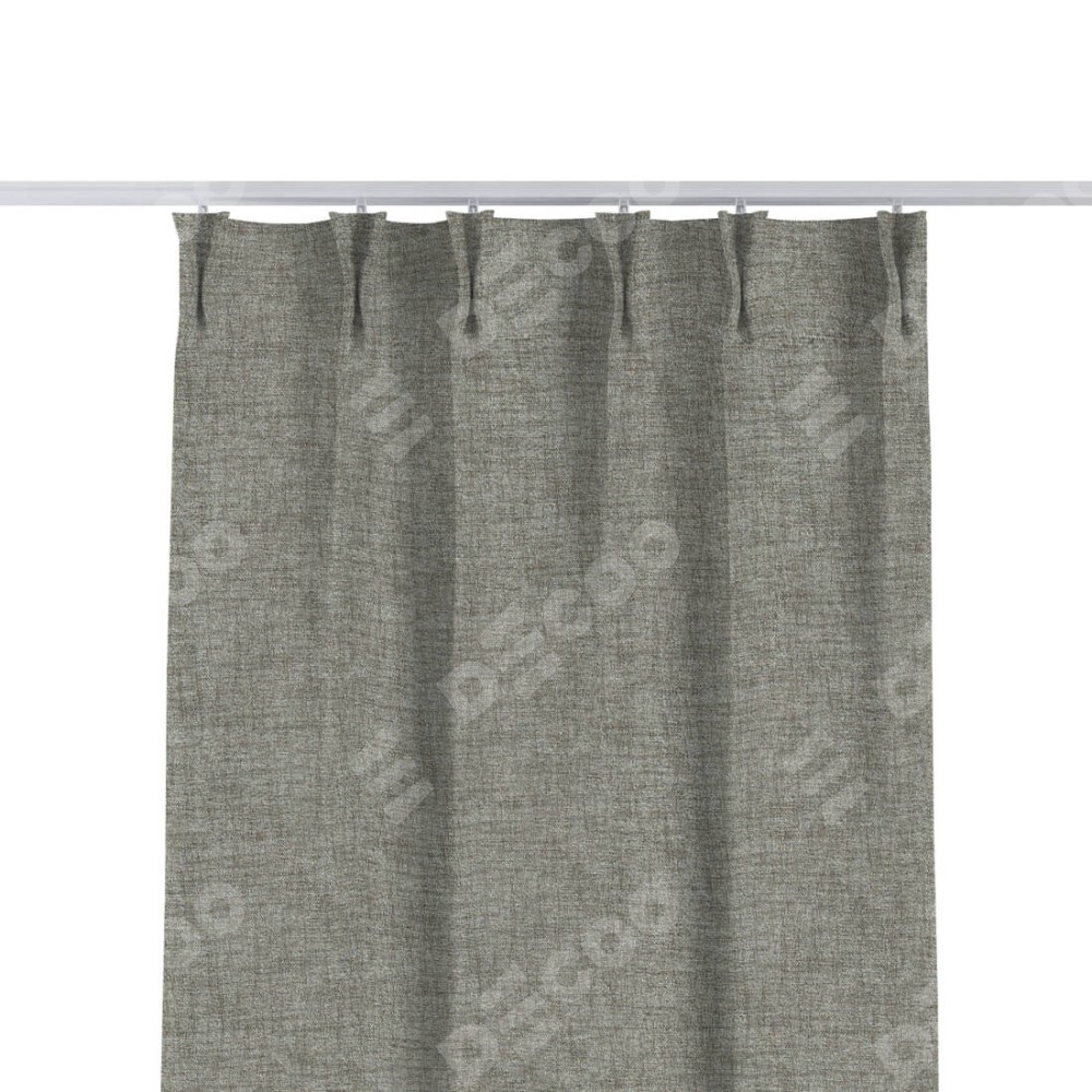 Комплект прямых штор, от производителя «Cortin», пошиты из ткани рогожка димаут серый дуб, артикул ткани 91028. С изнаночной стороны в верхней части штор пристрачивается шторная лента с декоративными складками «Кустик». Для создания элегантных складок прямые шторы шьются по стандарту с коэффициентом 1:2 (на 100 см. ширины проёма 200 см. ширины ткани).