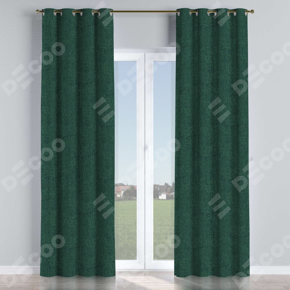 Комплект прямых штор, от производителя «Cortin», пошиты из ткани рогожка димаут тёмно-зелёный, артикул ткани 91022. Данная модель пошита на люверсах, комплектуется на выбор круглым карнизом и подходит для монтажа на стену или потолок. Прямые шторы на люверсах шьются по стандарту с коэффициентом 1/2 (на 100 см. ширины проёма 200 см. ширины ткани), отличительным преимуществом данной модели является простой способ монтажа. Достаточно повесить ее на трубу и штора готова!
