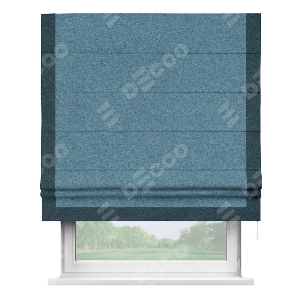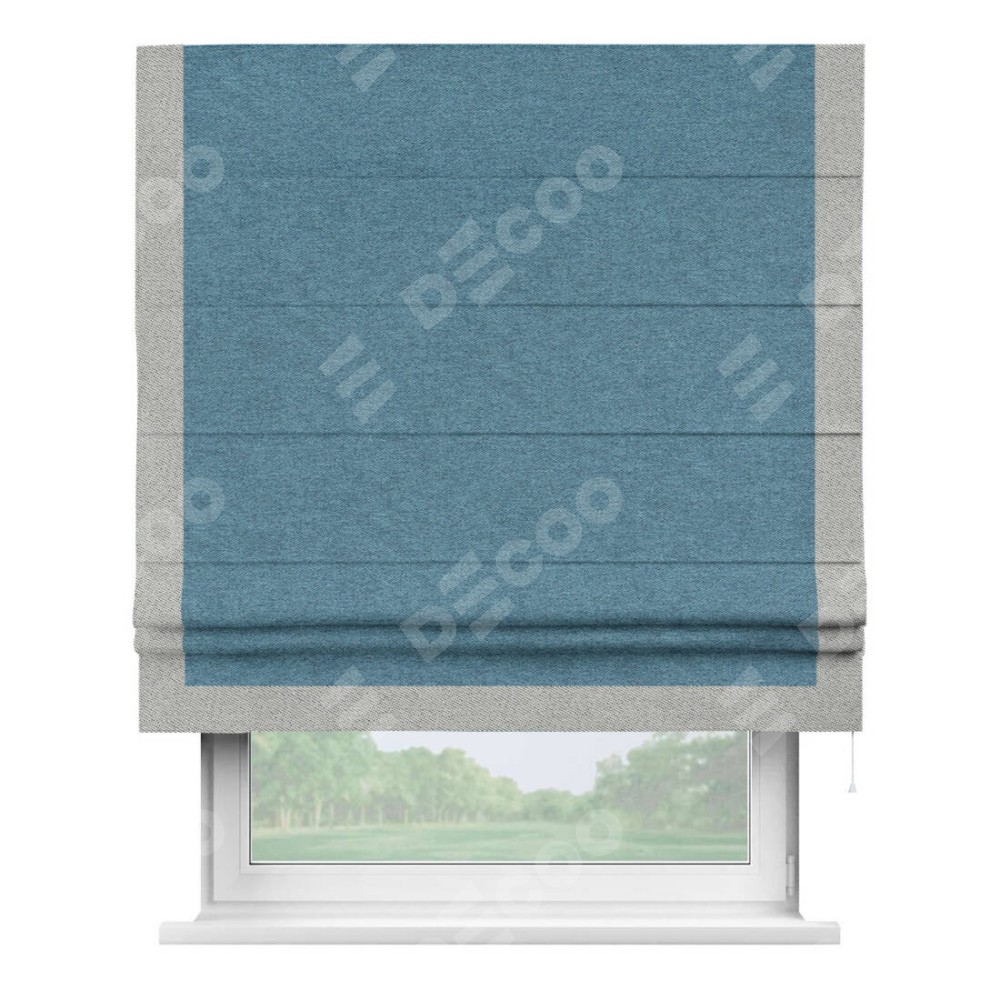 Римская штора с отделкой кантом «Виктория», пошита из ткани твид блэкаут светло-синий, артикул: 90935. представляет собой элегантное решение для оконного оформления. Кант по бокам и снизу шторы добавляет изысканности и аккуратности внешнему виду, подчеркивая линии и форму шторы. Этот элемент декора не только украшает, но и выполняет практическую функцию, защищая края ткани от износа. Кант может быть выполнен в контрастном или гармонирующем цвете, что позволяет добиться различных стилевых эффектов и легко вписать штору в интерьер комнаты.