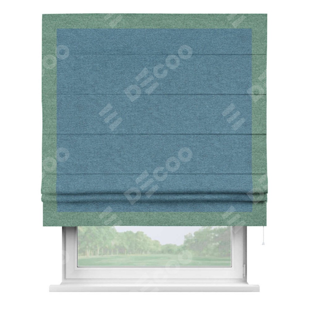 Римская штора «Кортин» с кантом Чесс, для проема, ткань твид блэкаут, светло-синий