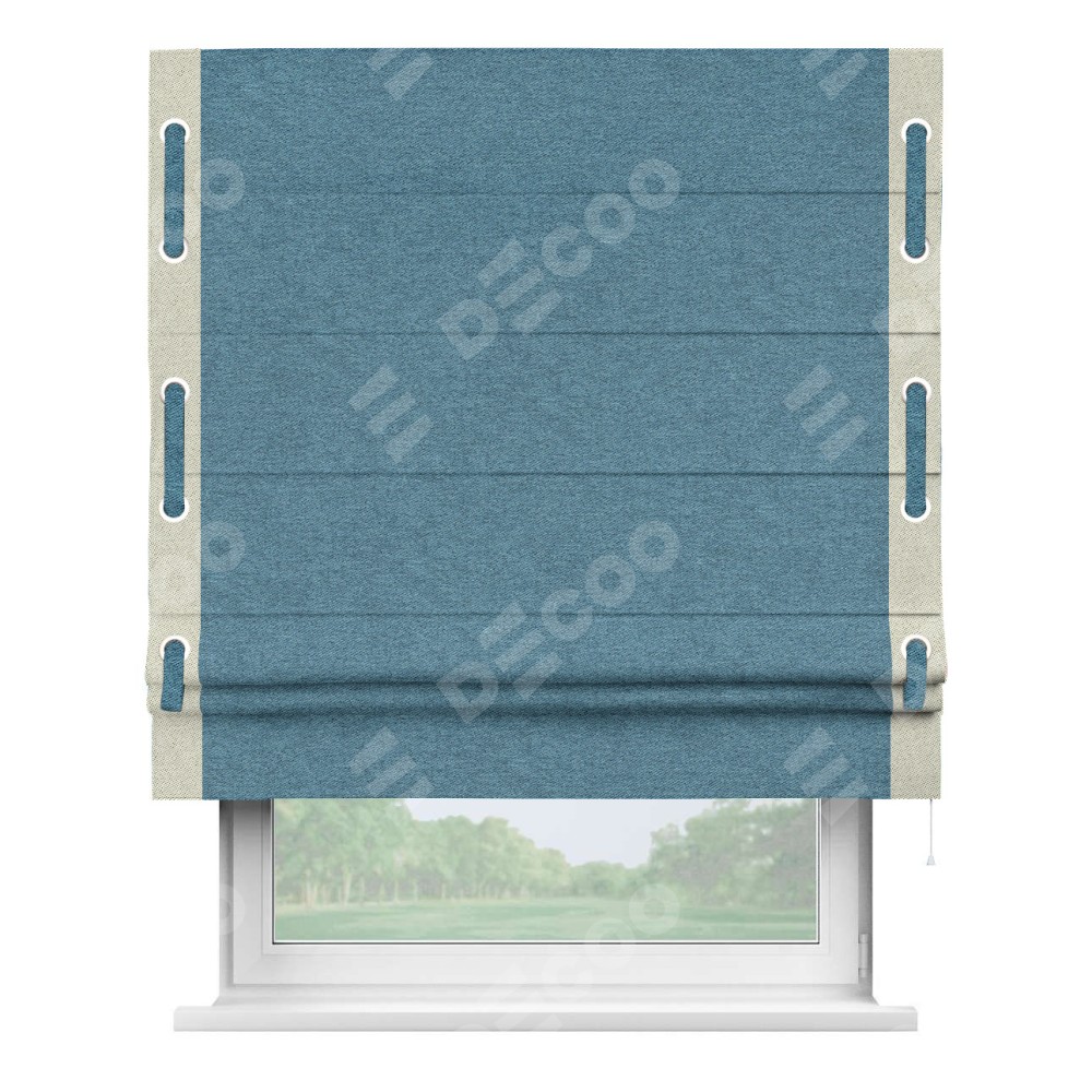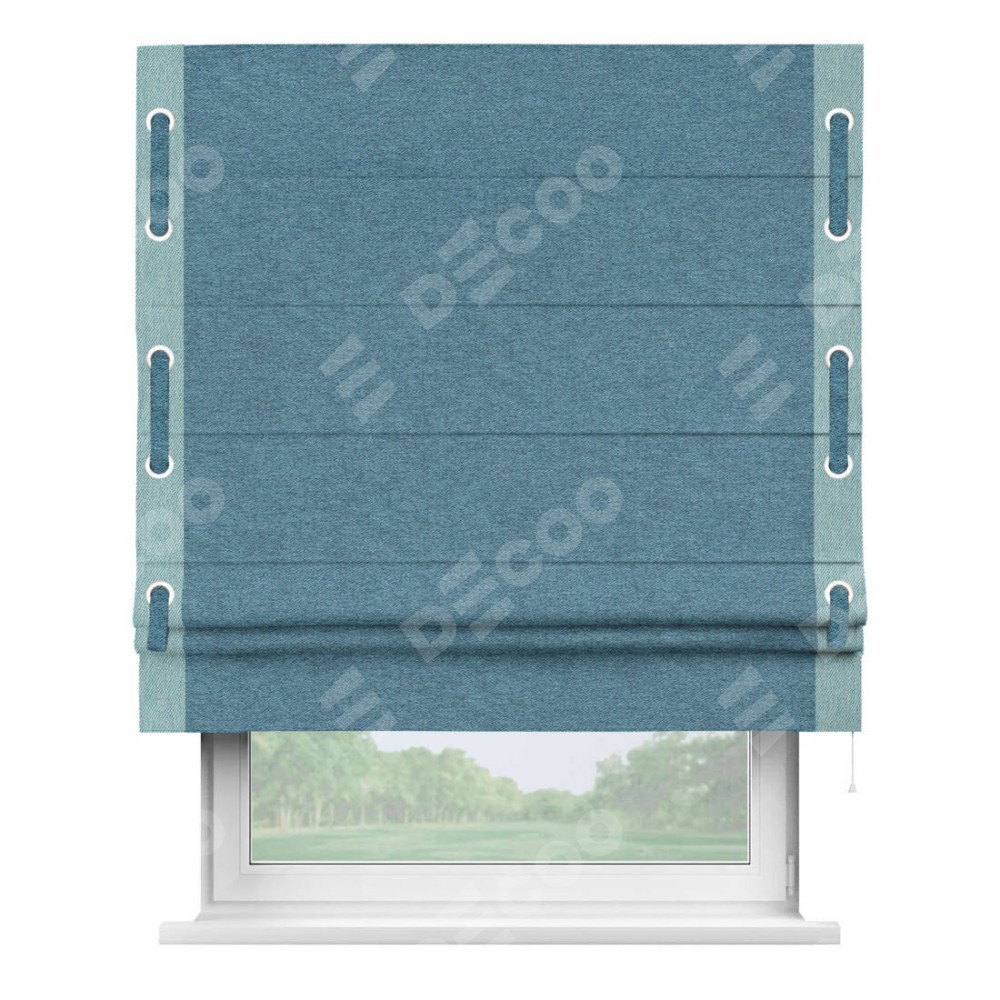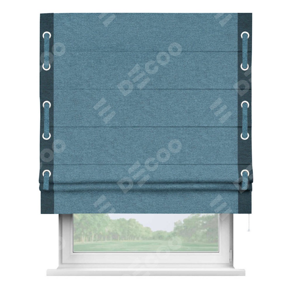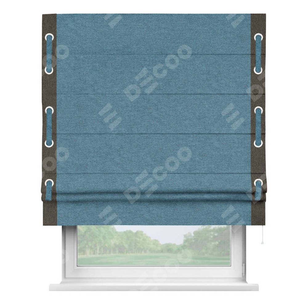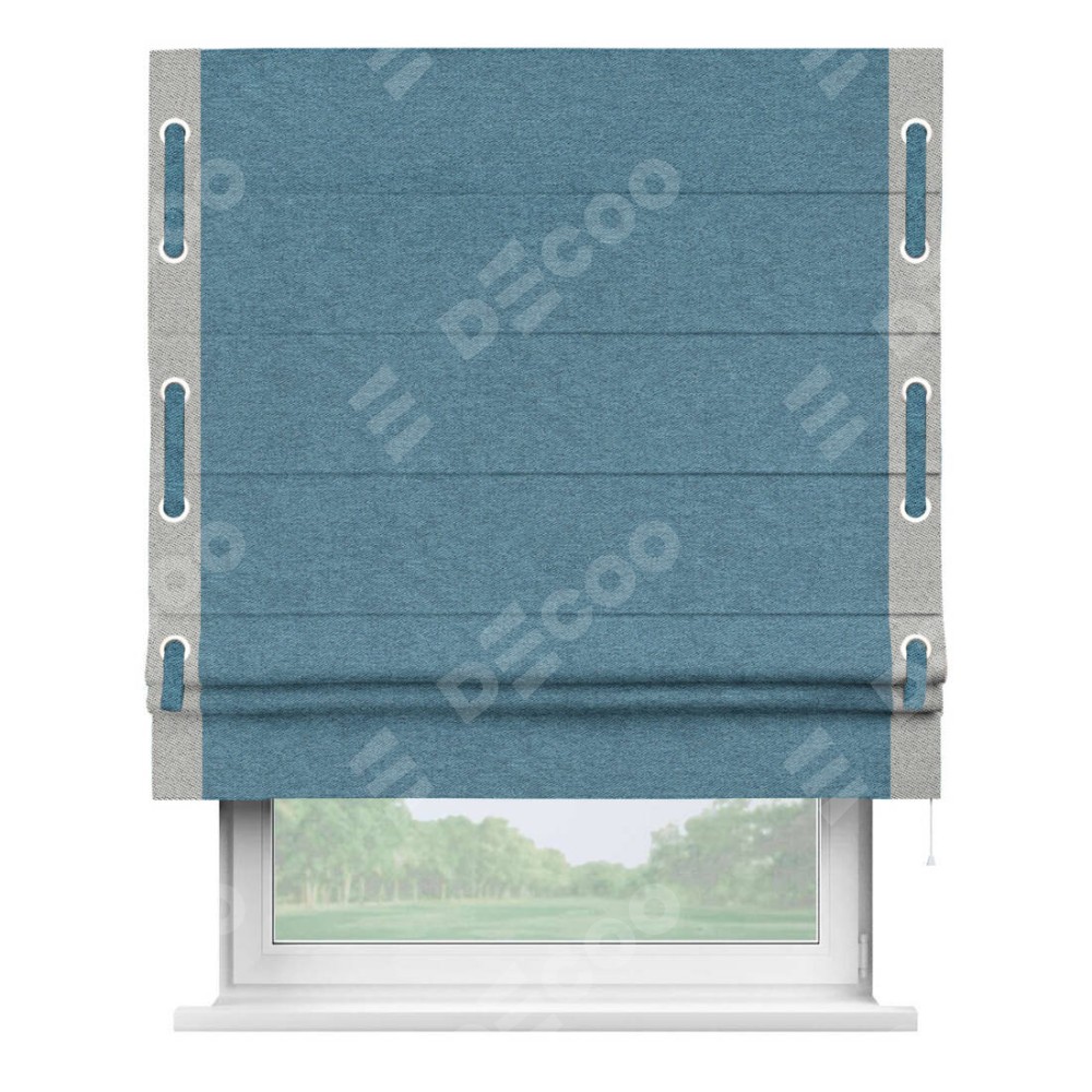 Римская штора «Кортин» с кантом Стрим Дуо (люверсы с пояском), для проема, ткань твид блэкаут, светло-синий