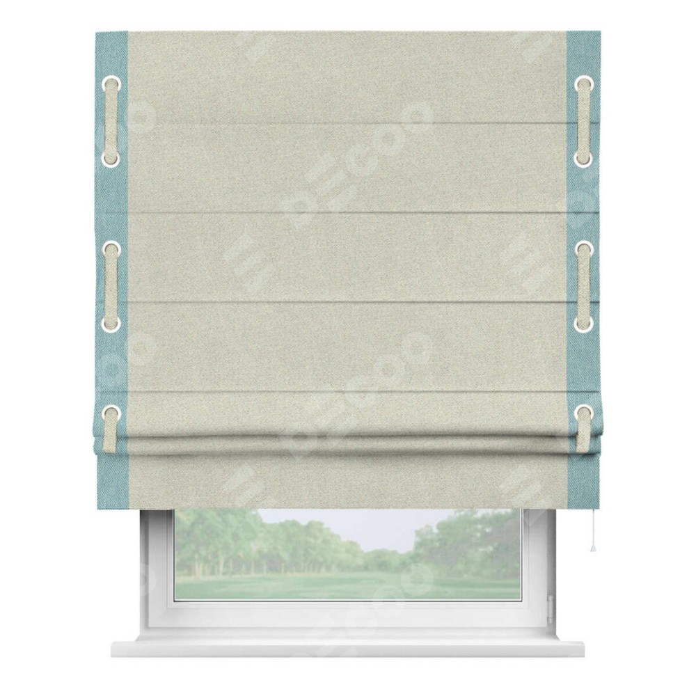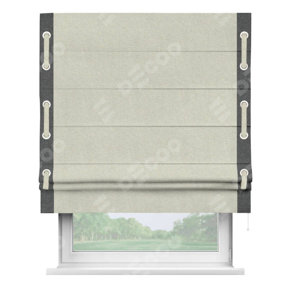 Римская штора «Кортин» с кантом Стрим Дуо (люверсы с пояском) отлично подойдёт для интерьера: в офис, в гостиную и на балкон.