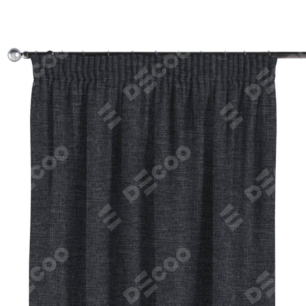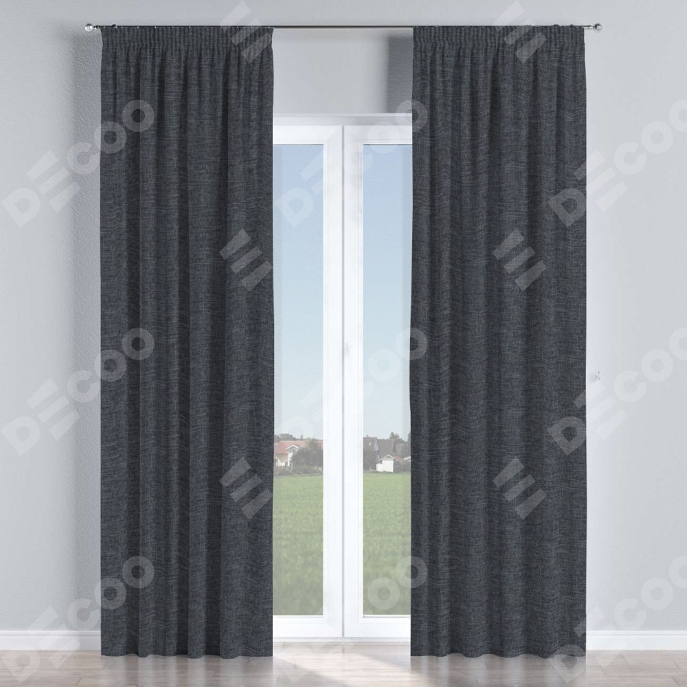 Комплект прямых штор, от производителя «Cortin», пошиты из ткани рогожка димаут графит, артикул ткани 90950. С изнаночной стороны в верхней части штор пристрачивается шторная лента с декоративными складками «Карандаш». Для создания элегантных складок прямые шторы шьются по стандарту с коэффициентом 1:2 (на 100 см. ширины проёма 200 см. ширины ткани).