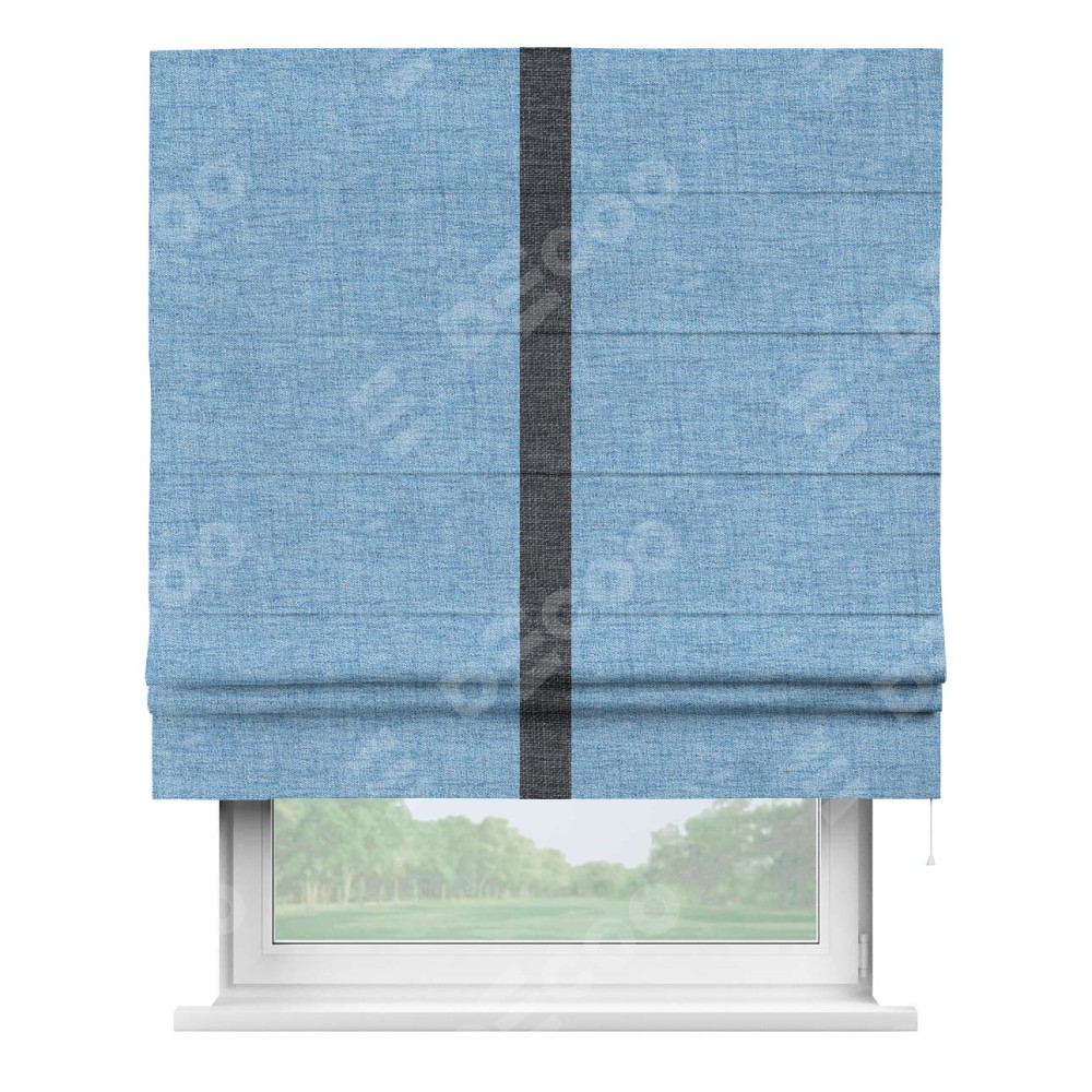 Римская штора «Кортин» для проёма, рогожка димаут голубой, с кантом Хайвэй