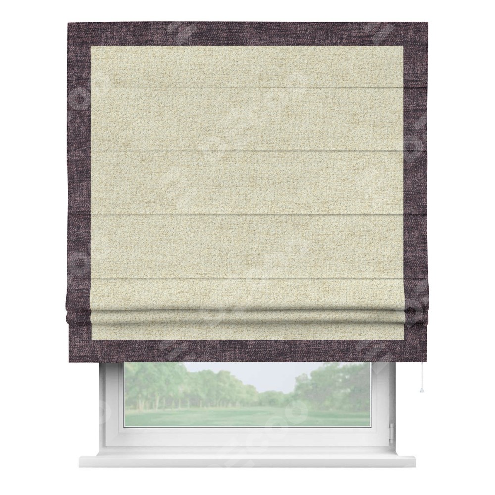 Римская штора пошита из ткани рогожка димаут золотой песок, артикул: 91015, с отделкой кантом «Чесс» отличается своей уникальной деталью — наличием канта не только по бокам и снизу, но и сверху по всем краям шторы. Это придает шторе особенно аккуратный и завершенный вид, делая акцент на границах и форме шторы. Отделка кантом по всему периметру шторы усиливает её декоративные качества и подчеркивает строгую геометрию, что может быть особенно актуально для современных и минималистичных интерьеров.