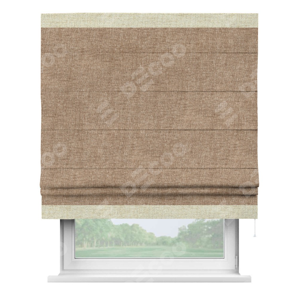 Римская штора «Кортин» для проёма, рогожка димаут светло-коричневый, с кантом Горизонт