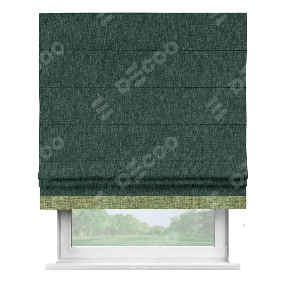 Римская штора «Кортин» для проёма, рогожка димаут тёмно-зелёный, с кантом Джестер
