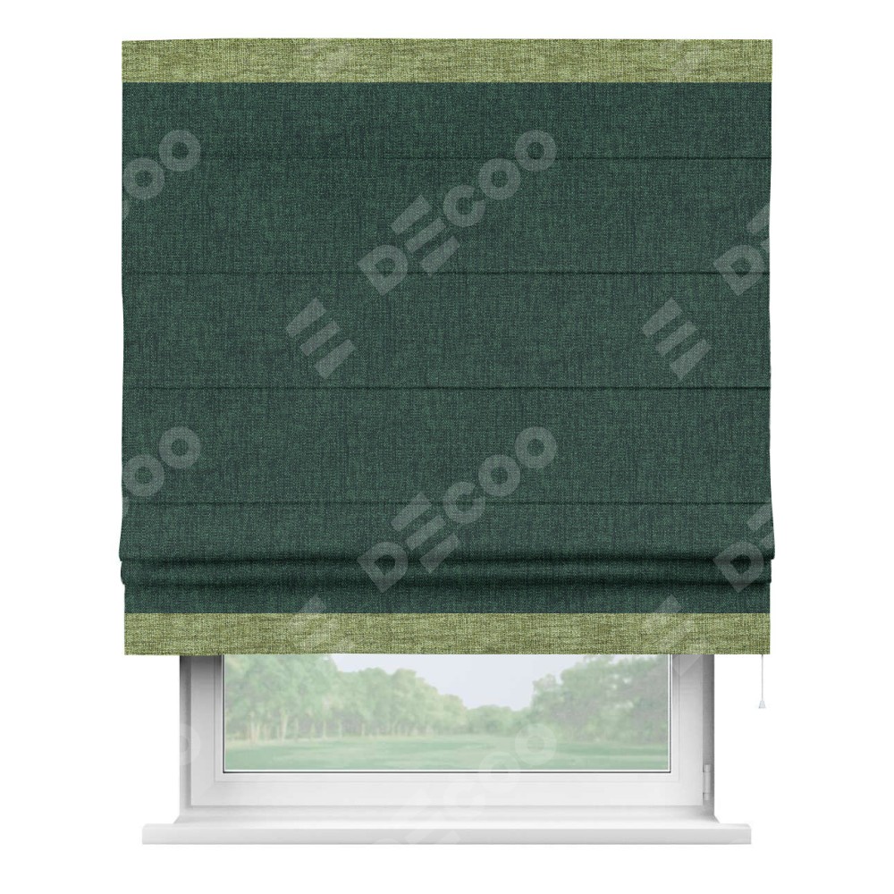 Римская штора «Кортин» для проёма, рогожка димаут тёмно-зелёный, с кантом Горизонт