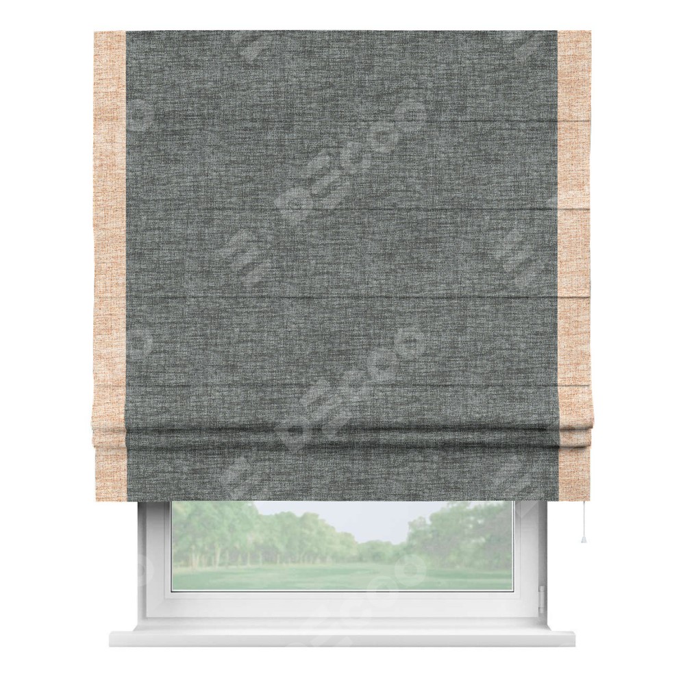 Римская штора «Кортин» для проёма, рогожка димаут тёмно-серый, с кантом Стрим Дуо