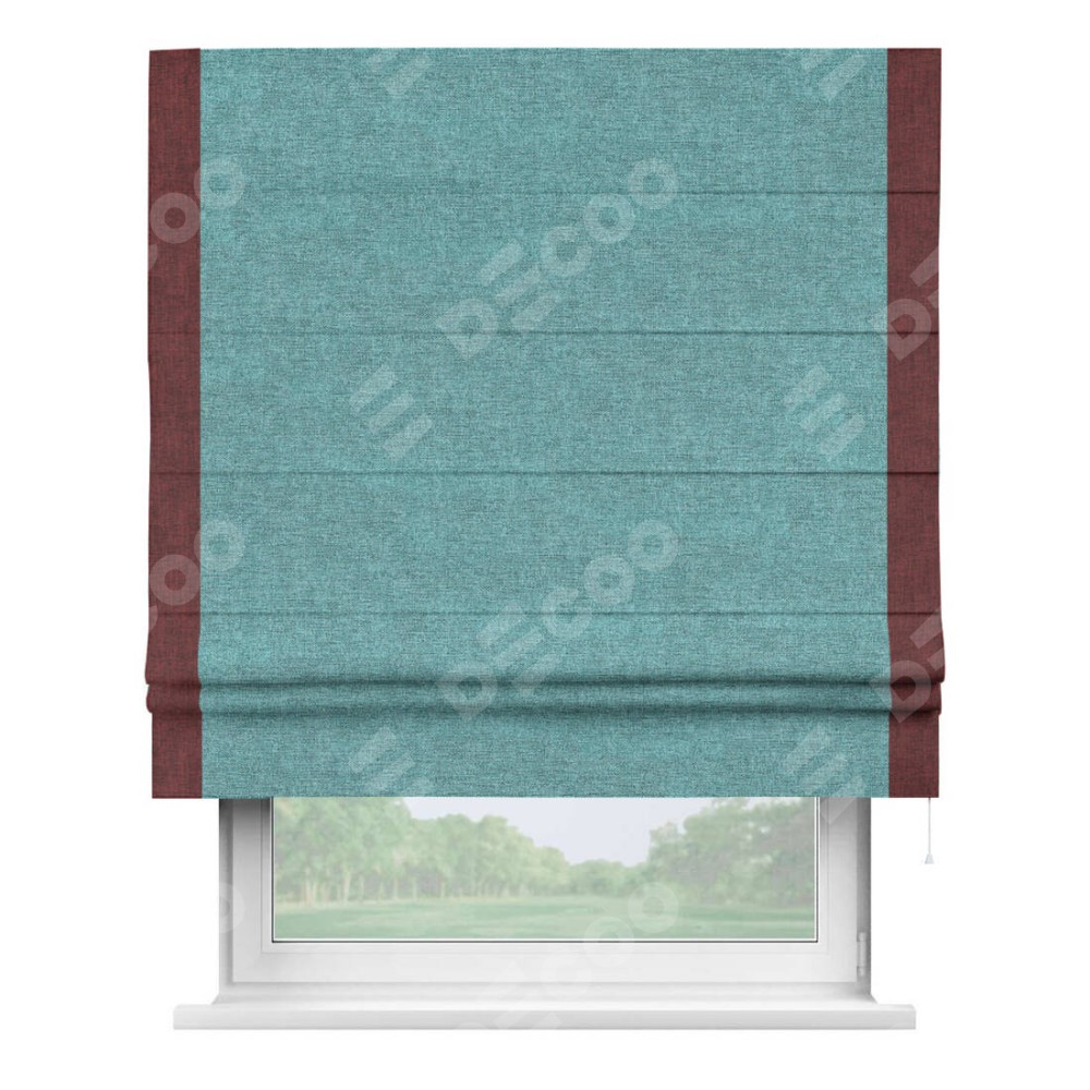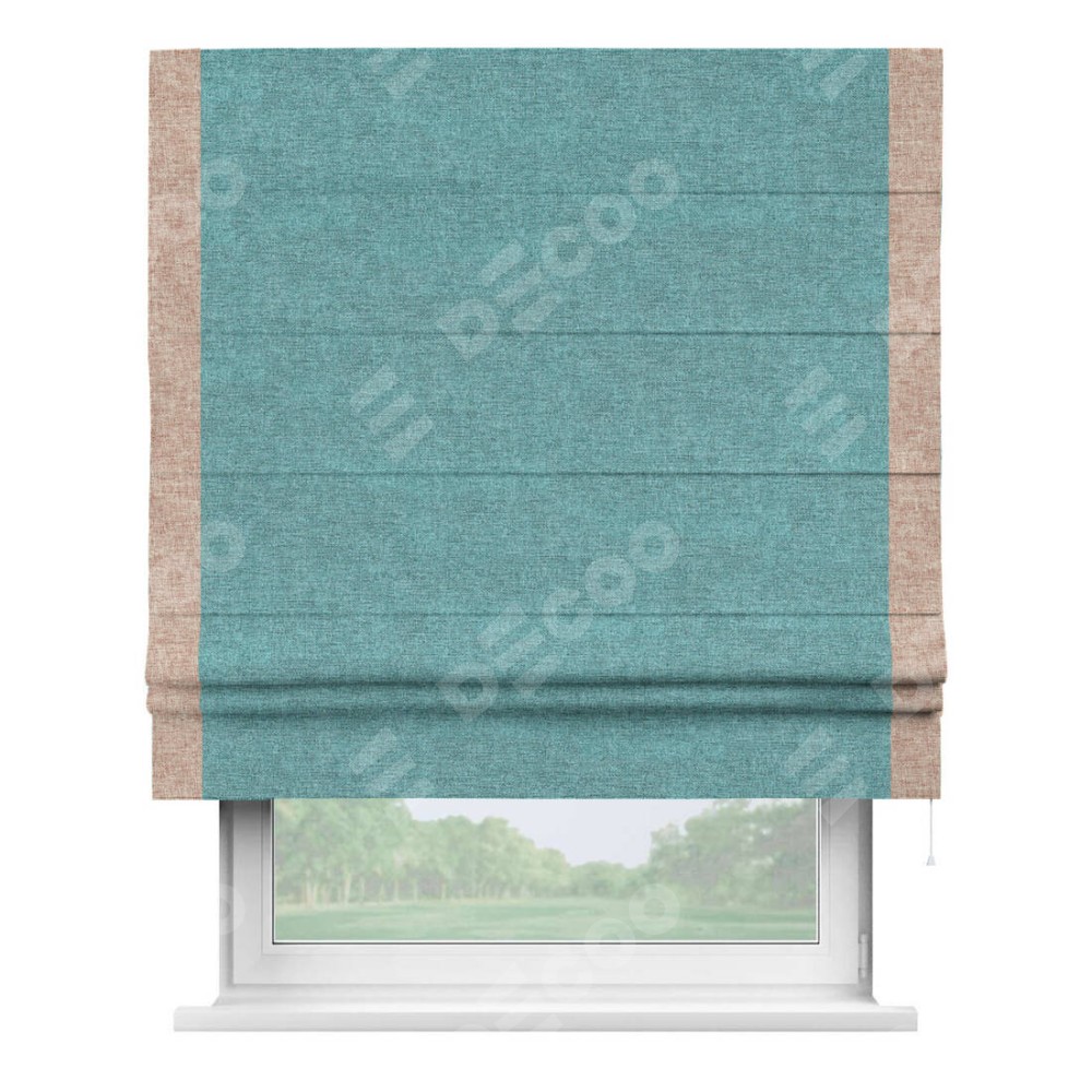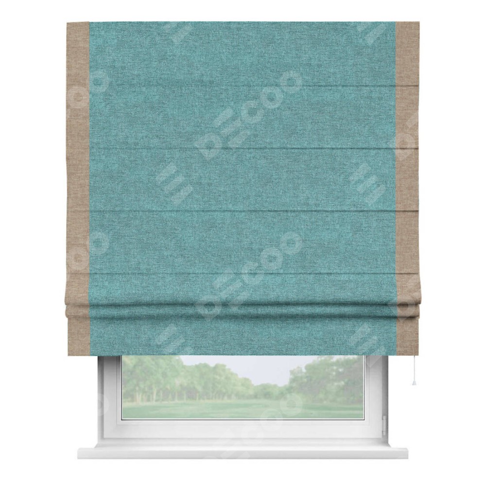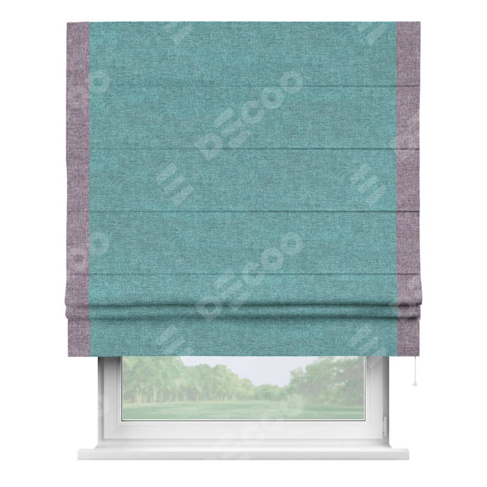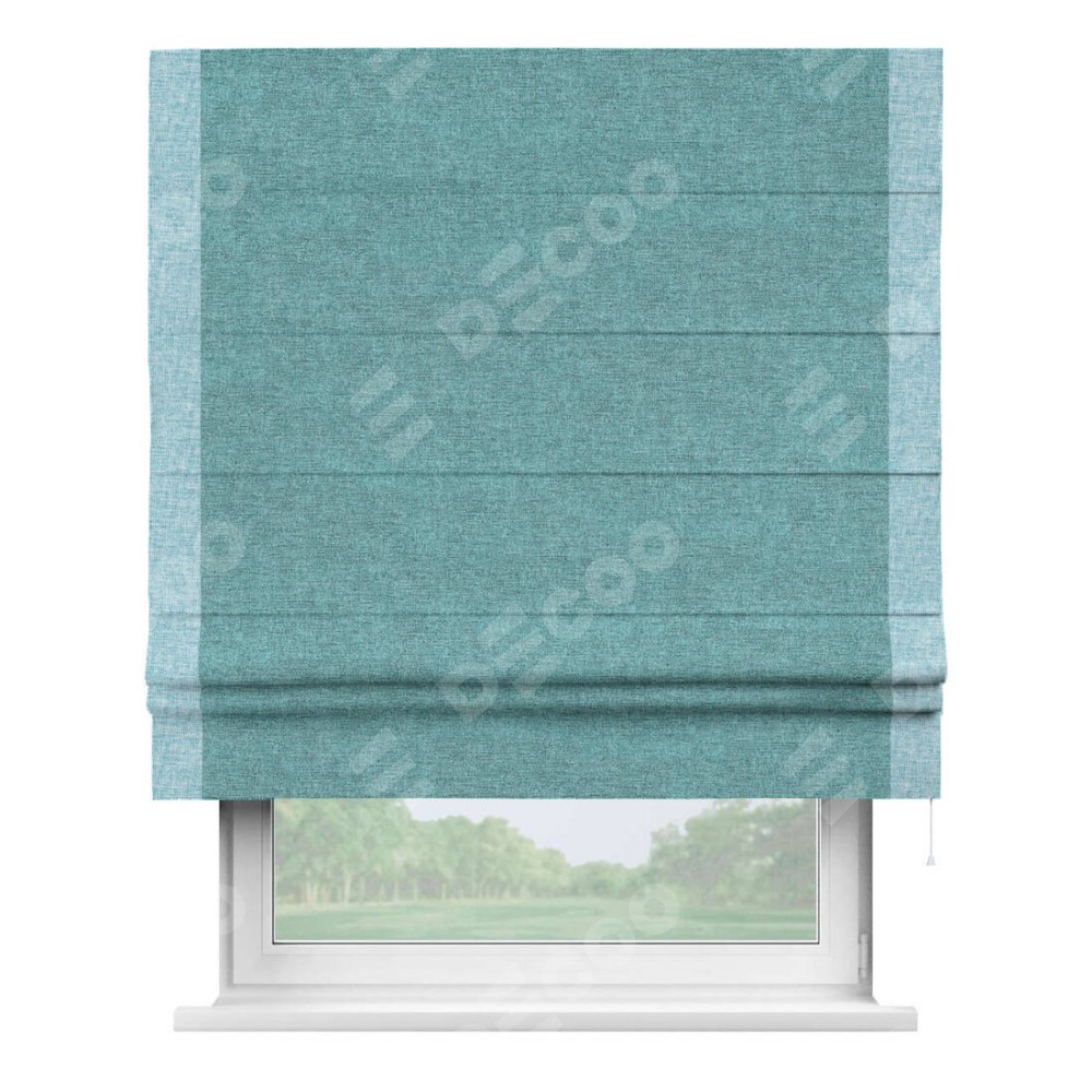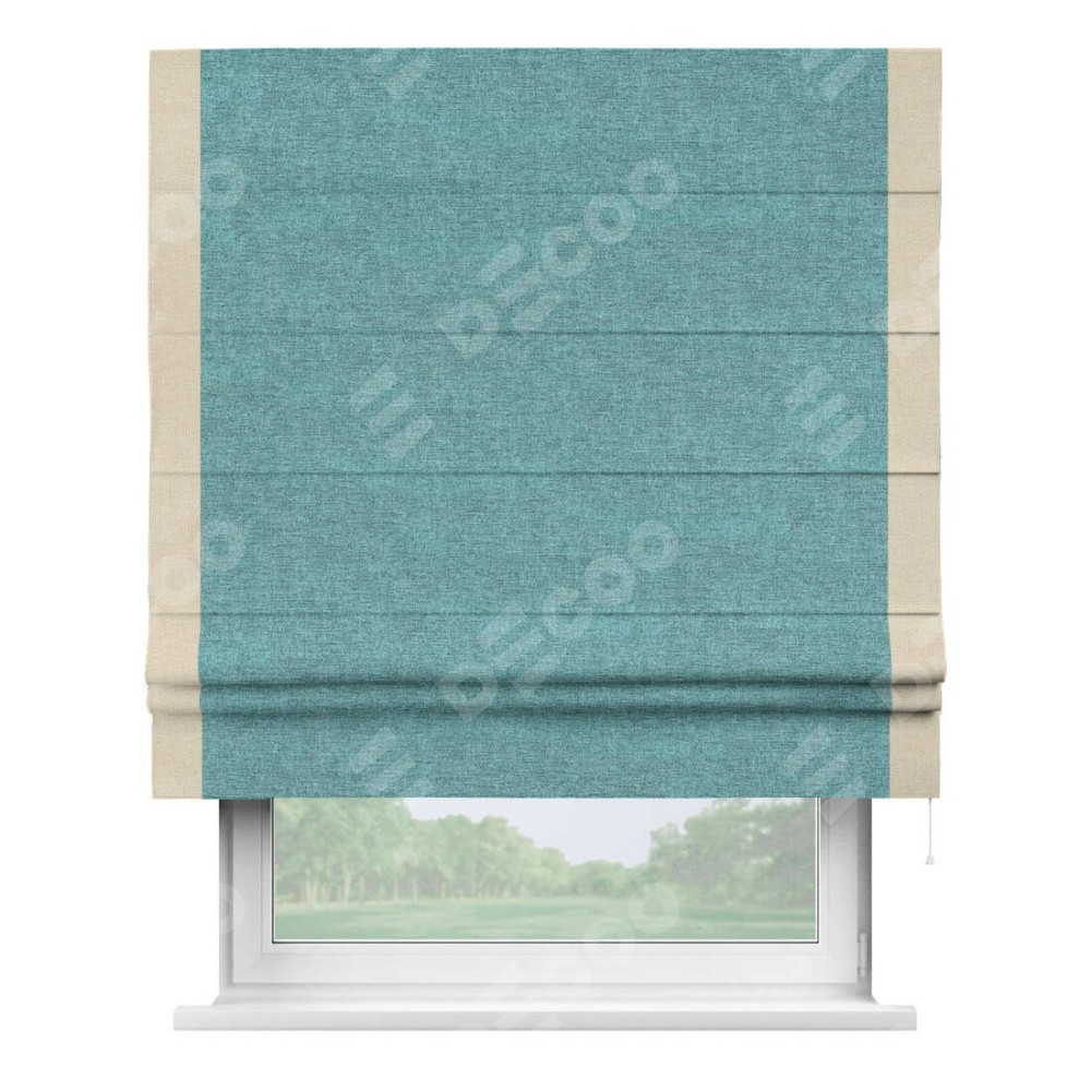 Римская штора «Кортин» с кантом Стрим Дуо, для проема, ткань лён кашемир бирюзовый