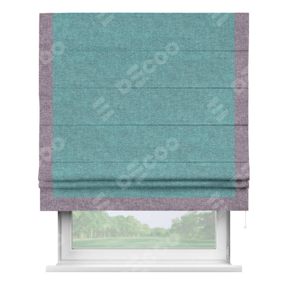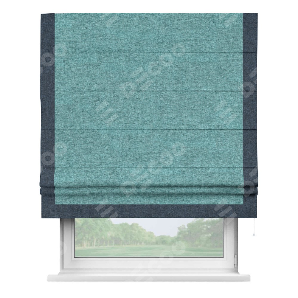 Римская штора с отделкой кантом «Виктория», пошита из ткани лён кашемир бирюзовый, артикул: 17214. представляет собой элегантное решение для оконного оформления. Кант по бокам и снизу шторы добавляет изысканности и аккуратности внешнему виду, подчеркивая линии и форму шторы. Этот элемент декора не только украшает, но и выполняет практическую функцию, защищая края ткани от износа. Кант может быть выполнен в контрастном или гармонирующем цвете, что позволяет добиться различных стилевых эффектов и легко вписать штору в интерьер комнаты.