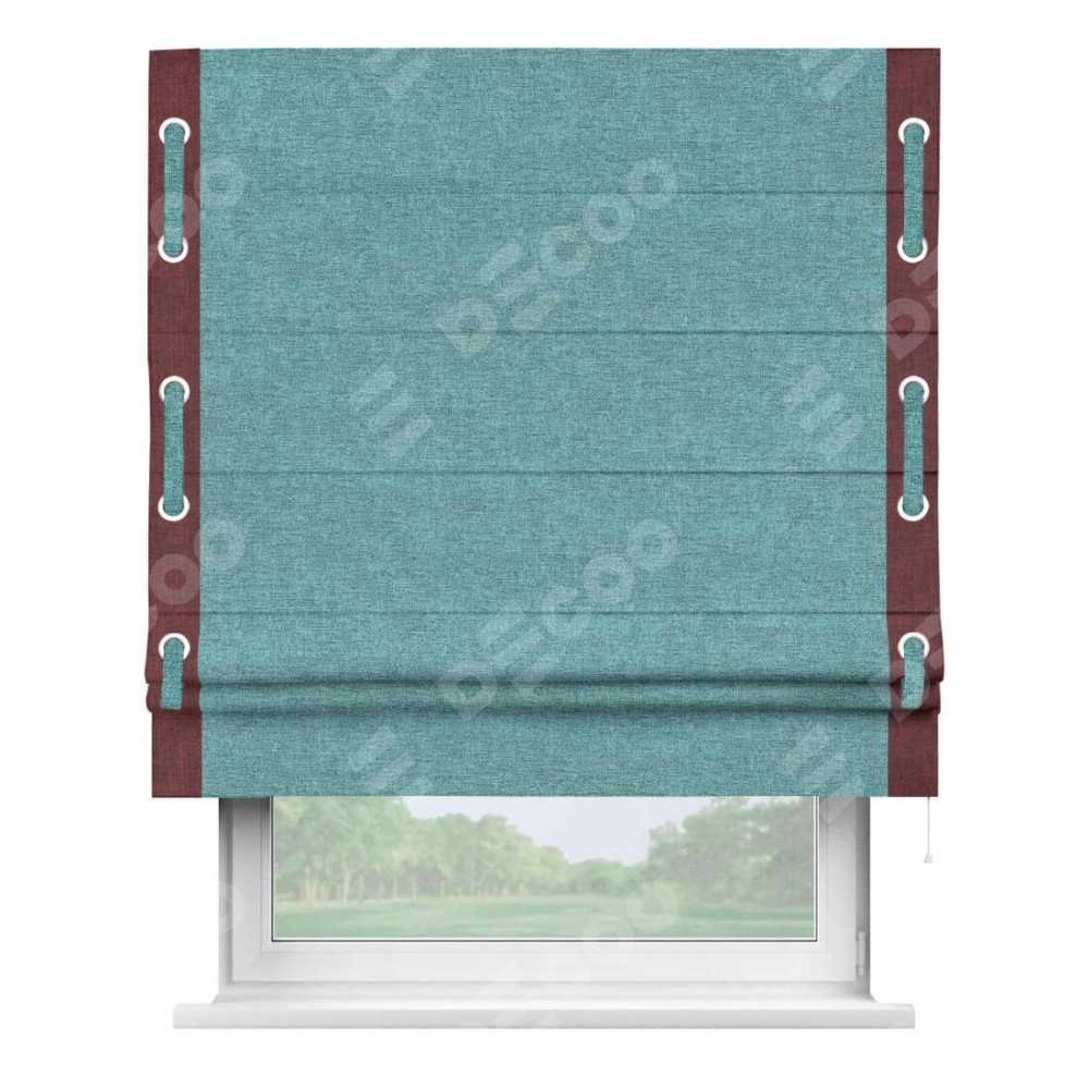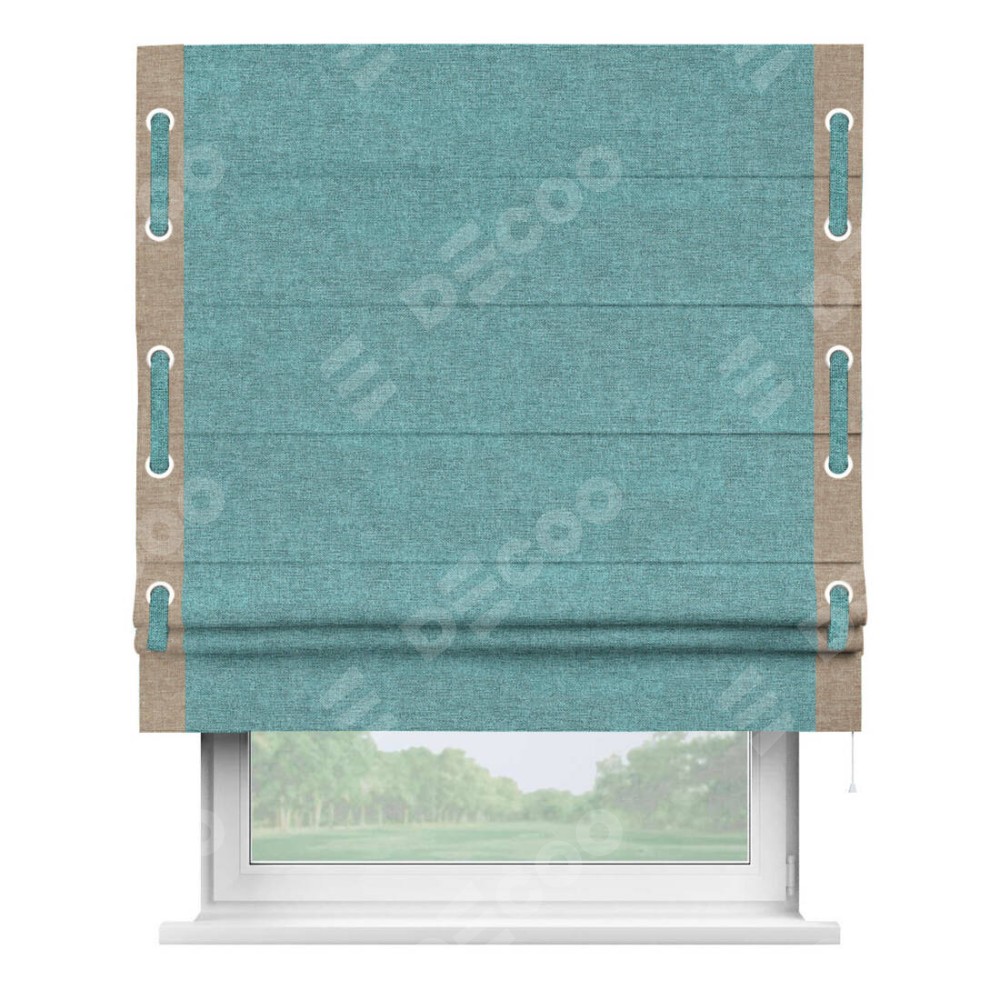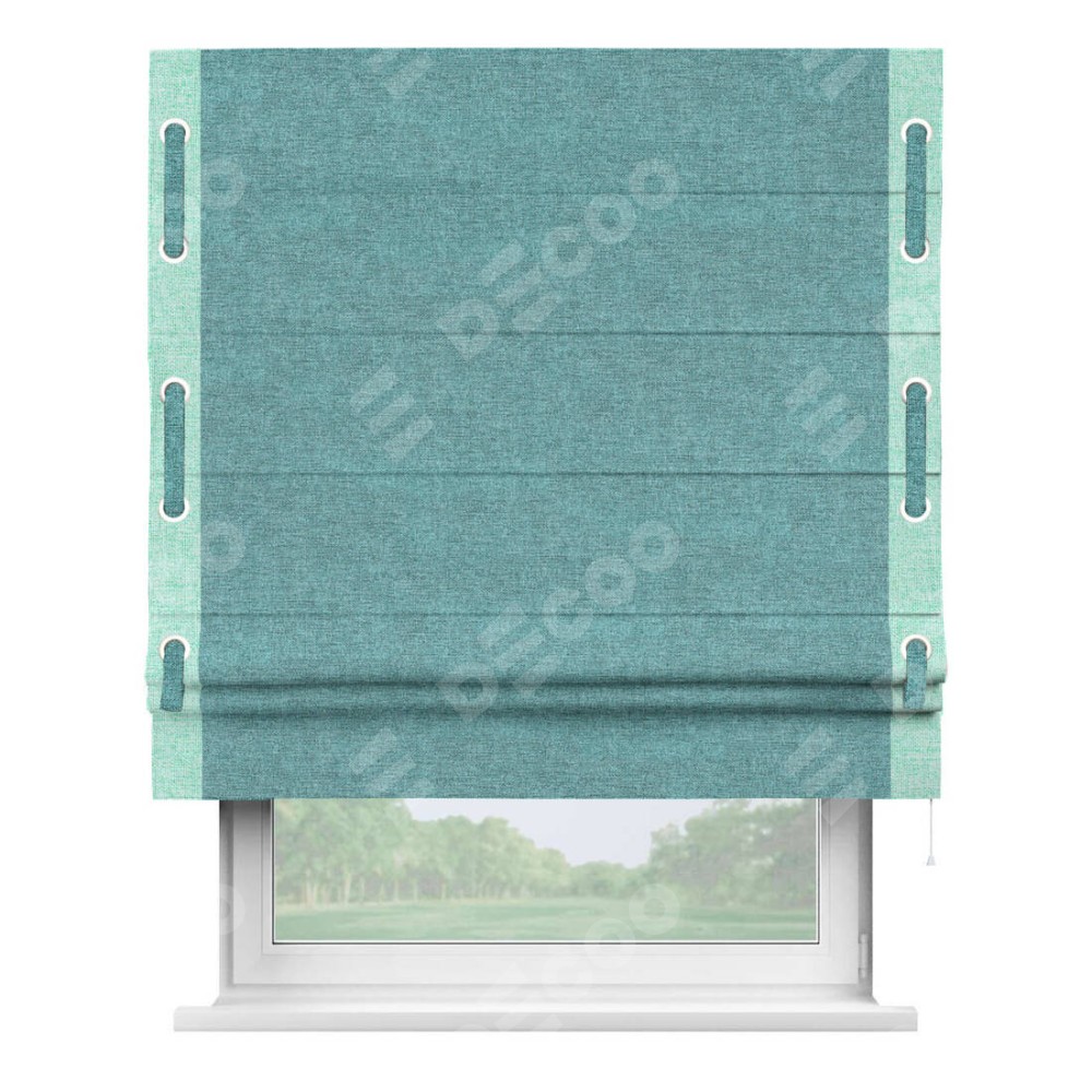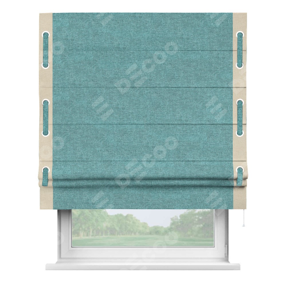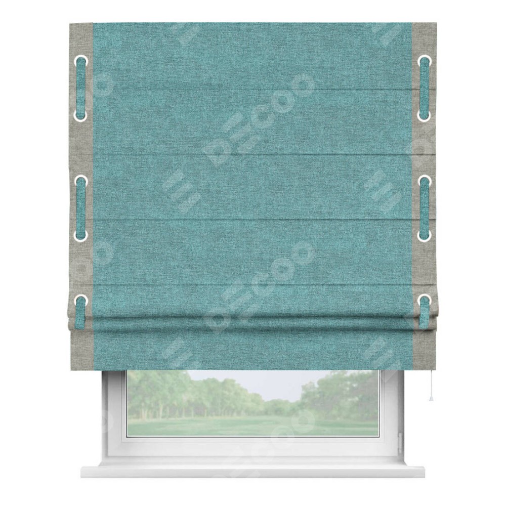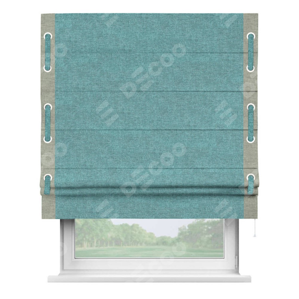 Римская штора «Кортин» с кантом Стрим Дуо (люверсы с пояском), для проема, ткань лён кашемир бирюзовый