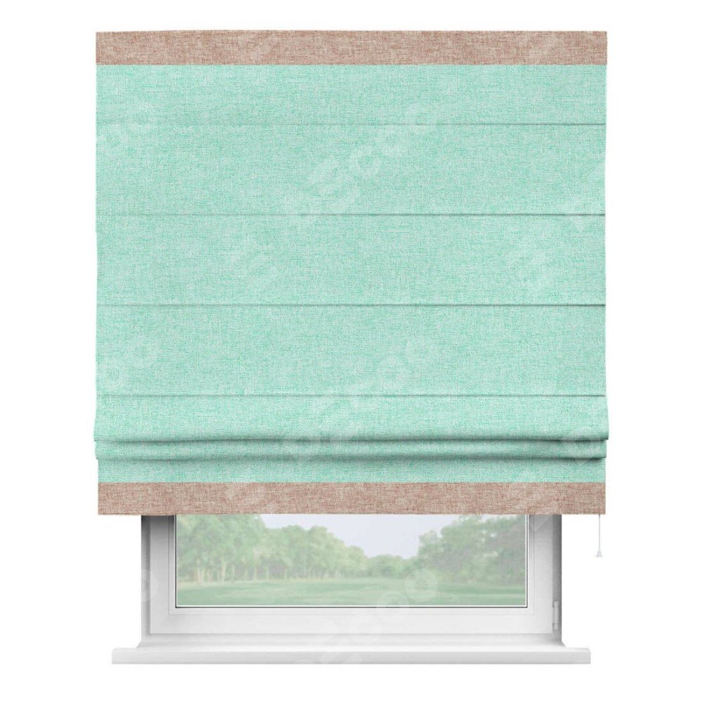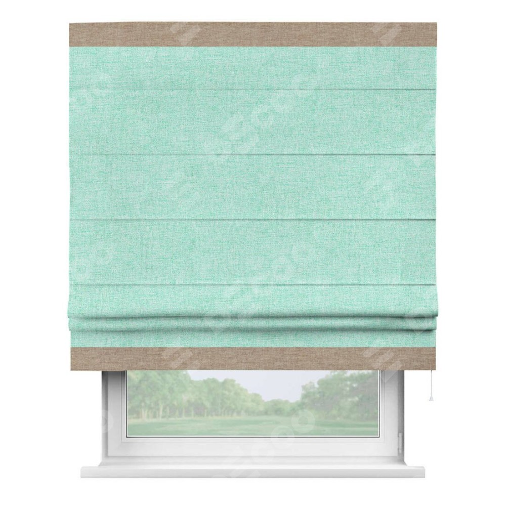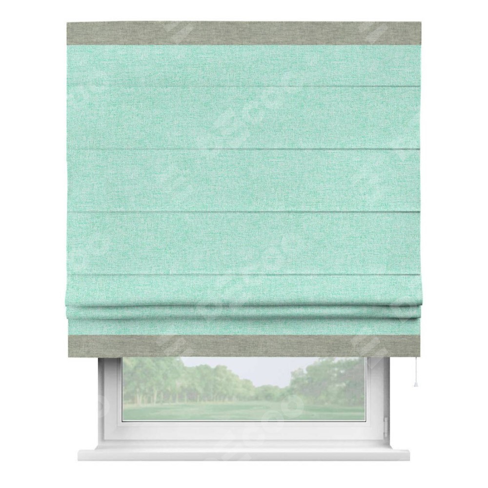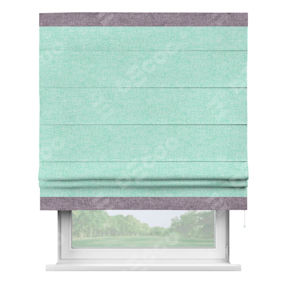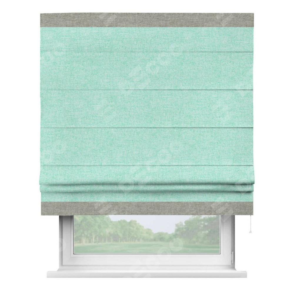 Римская штора «Кортин» для проёма, лён кашемир мятный, с кантом Горизонт
