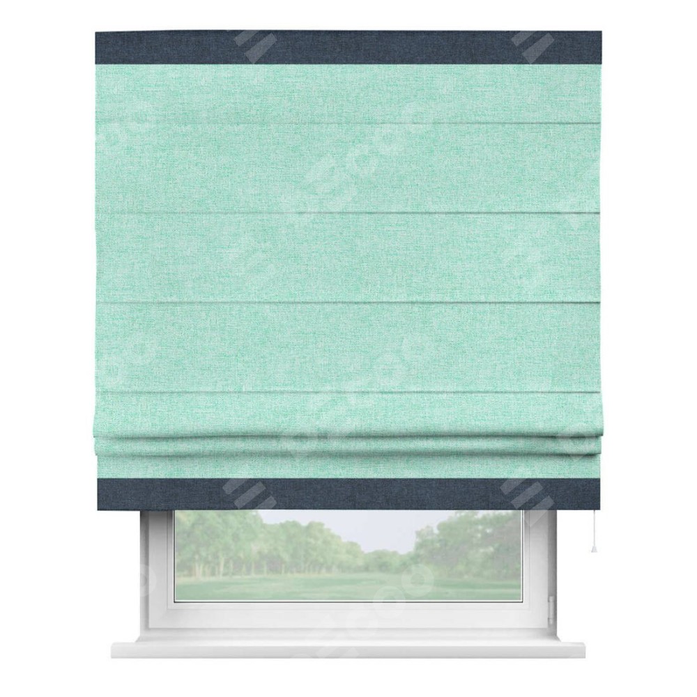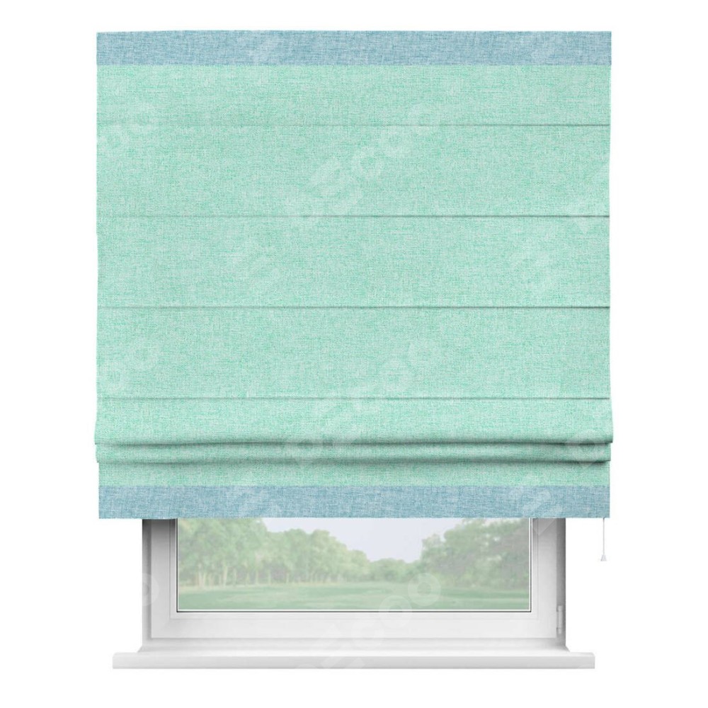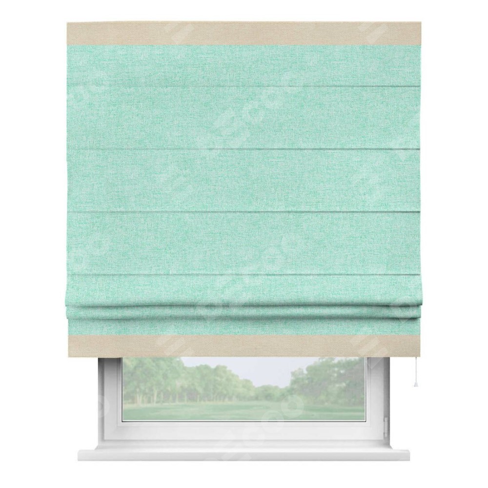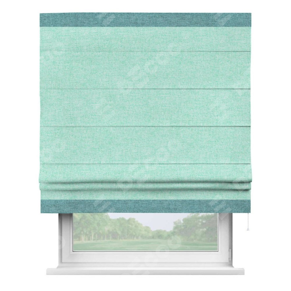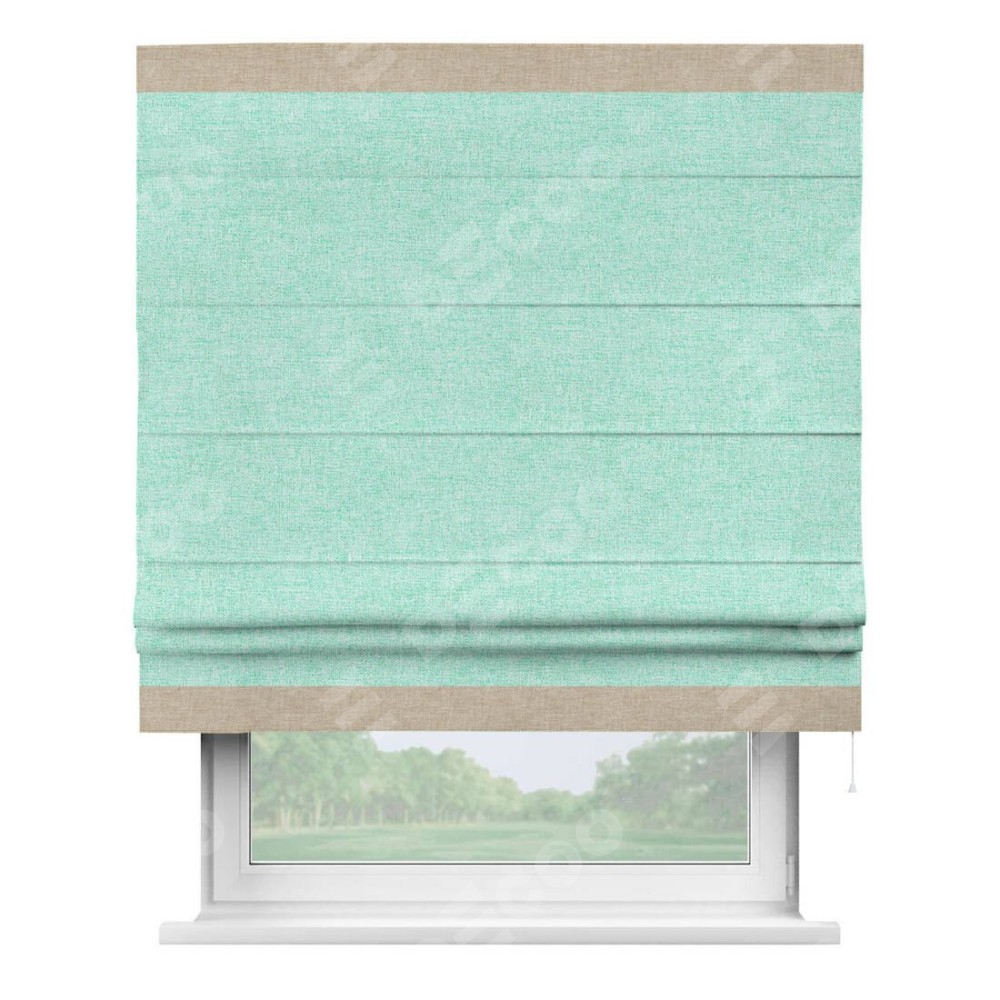 Римская штора «Кортин» для проёма, лён кашемир мятный, с кантом Горизонт