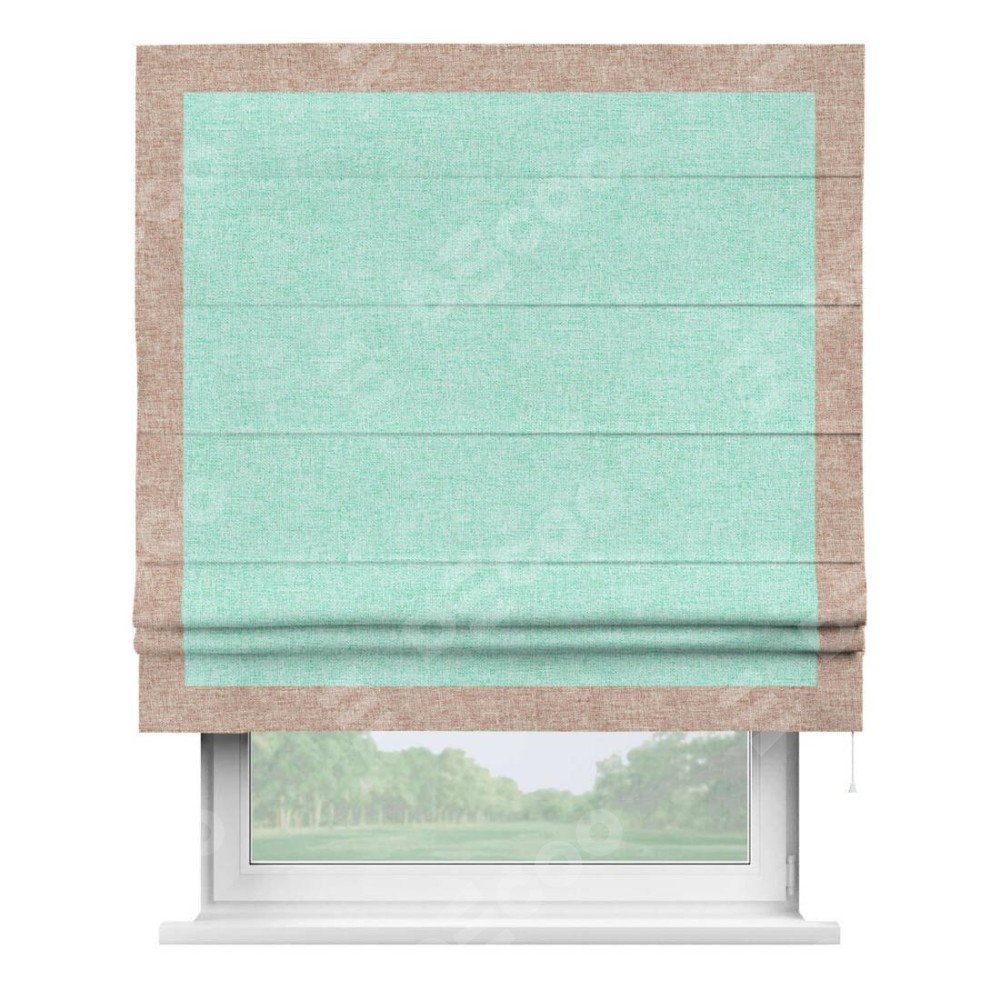 Римская штора «Кортин» для проёма, лён кашемир мятный, с кантом Чесс