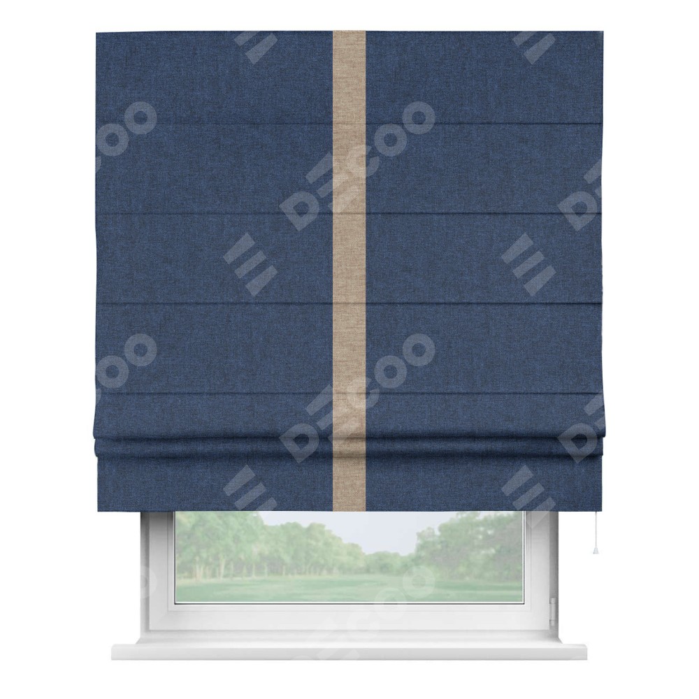 Римская штора «Кортин» для проёма, лён кашемир тёмно-синий, с кантом Хайвэй
