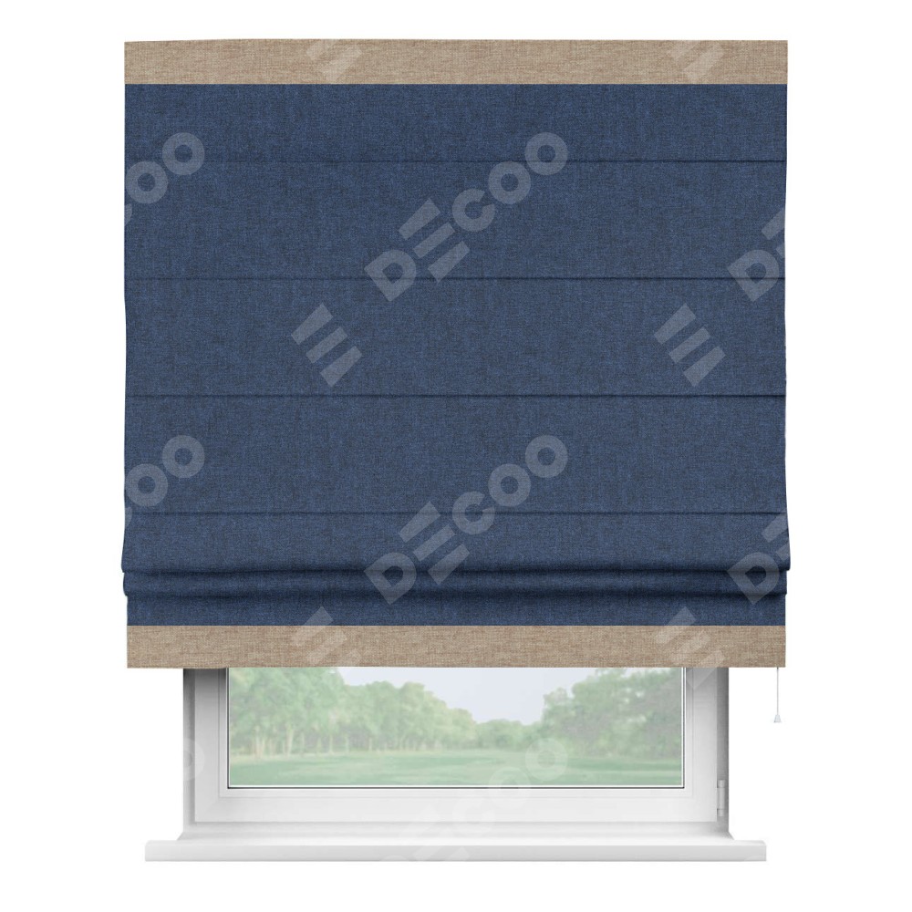 Римская штора «Кортин» для проёма, лён кашемир тёмно-синий, с кантом Горизонт