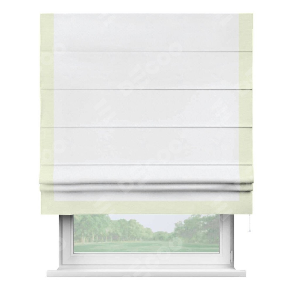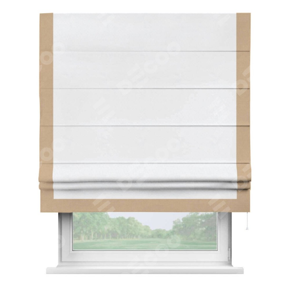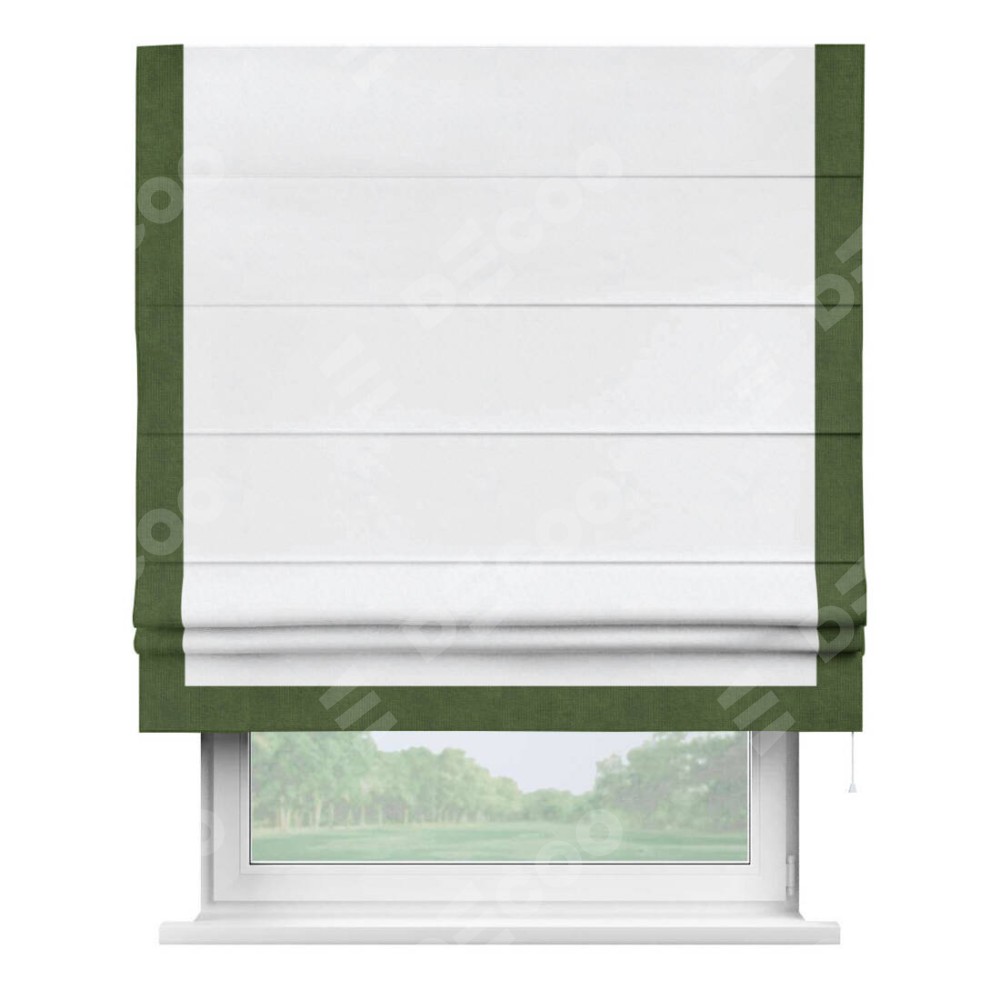 Римская штора с отделкой кантом «Виктория», пошита из ткани вельвет белоснежный, артикул: 92698. представляет собой элегантное решение для оконного оформления. Кант по бокам и снизу шторы добавляет изысканности и аккуратности внешнему виду, подчеркивая линии и форму шторы. Этот элемент декора не только украшает, но и выполняет практическую функцию, защищая края ткани от износа. Кант может быть выполнен в контрастном или гармонирующем цвете, что позволяет добиться различных стилевых эффектов и легко вписать штору в интерьер комнаты.