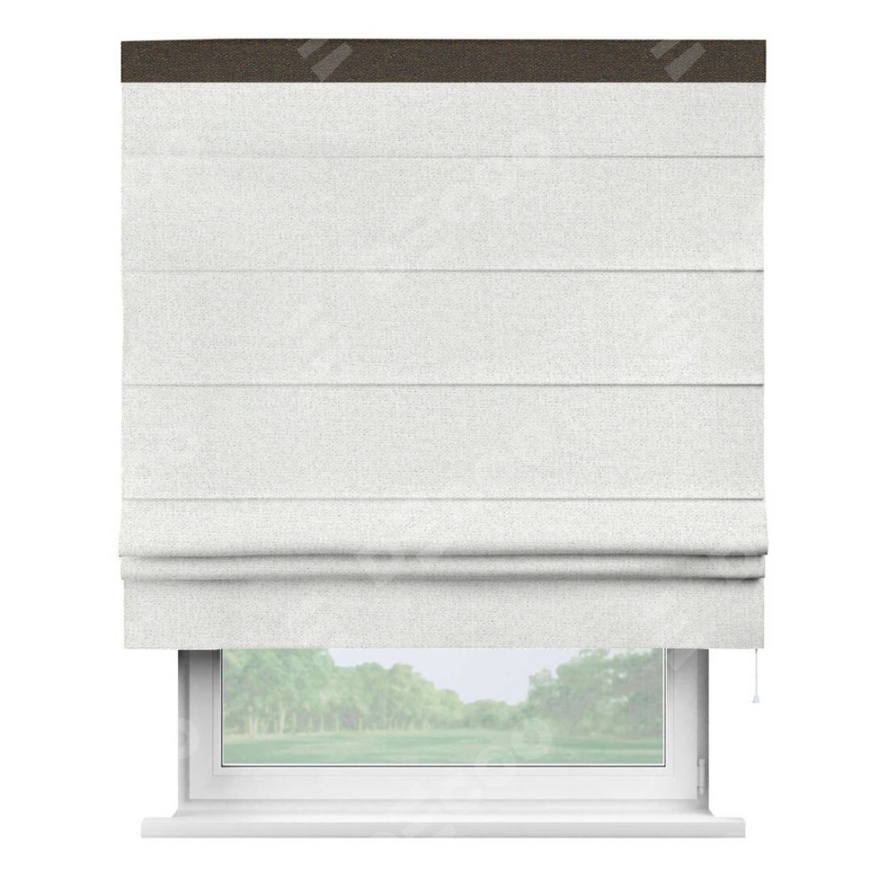 Римская штора пошита из ткани лён шампань, артикул: 91399, с отделкой кантом «Кинг» отличается своей необычной особенностью: кант располагается исключительно сверху шторы. Такой дизайн делает акцент на верхней части окна, визуально поднимая потолок и придавая интерьеру более возвышенный и изысканный вид. Отделка кантом на верхней кромке не только украшает штору, но и может служить дополнительной защитой от износа в месте наибольшего контакта с механизмом управления шторой.