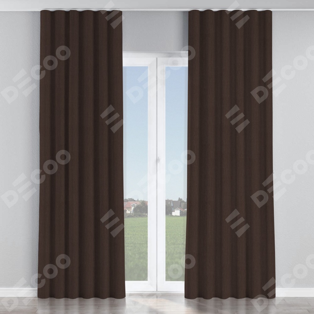 Комплект прямых штор, от производителя «Cortin», пошиты из ткани лён димаут венге, артикул ткани 91001. С изнаночной стороны в верхней части штор пристрачивается шторная лента с декоративными складками «Волна». Для создания элегантных складок прямые шторы шьются по стандарту с коэффициентом 1:2 (на 100 см. ширины проёма 200 см. ширины ткани).