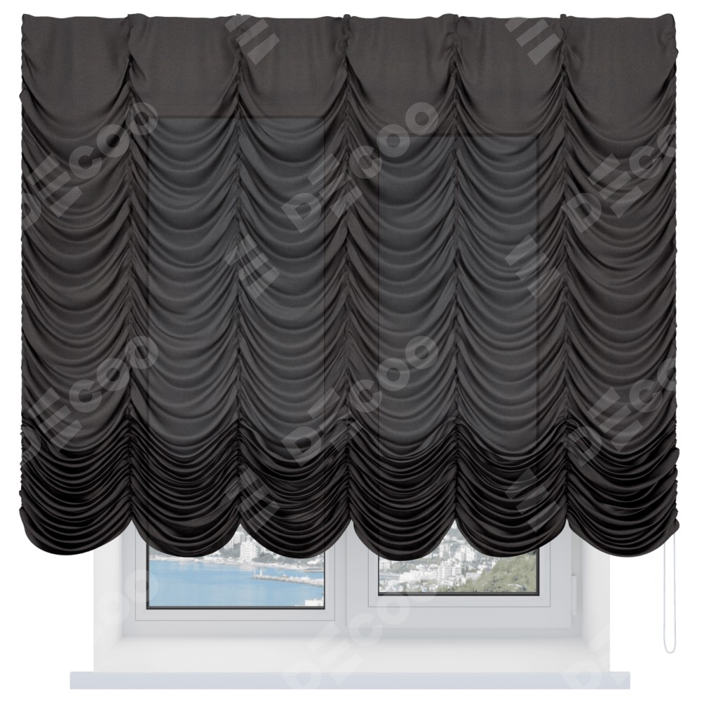 Французская штора производителя «Cortin», используется для проёма, пошита из ткани лён тёмно-коричневый, артикул ткани 53444. Имеет универсальный механизм и подходит для монтажа: на потолок и на стену.