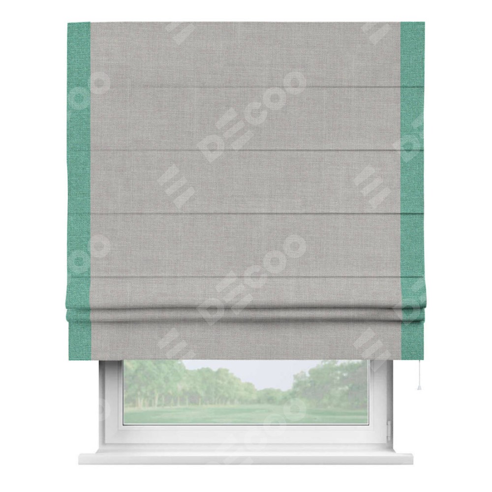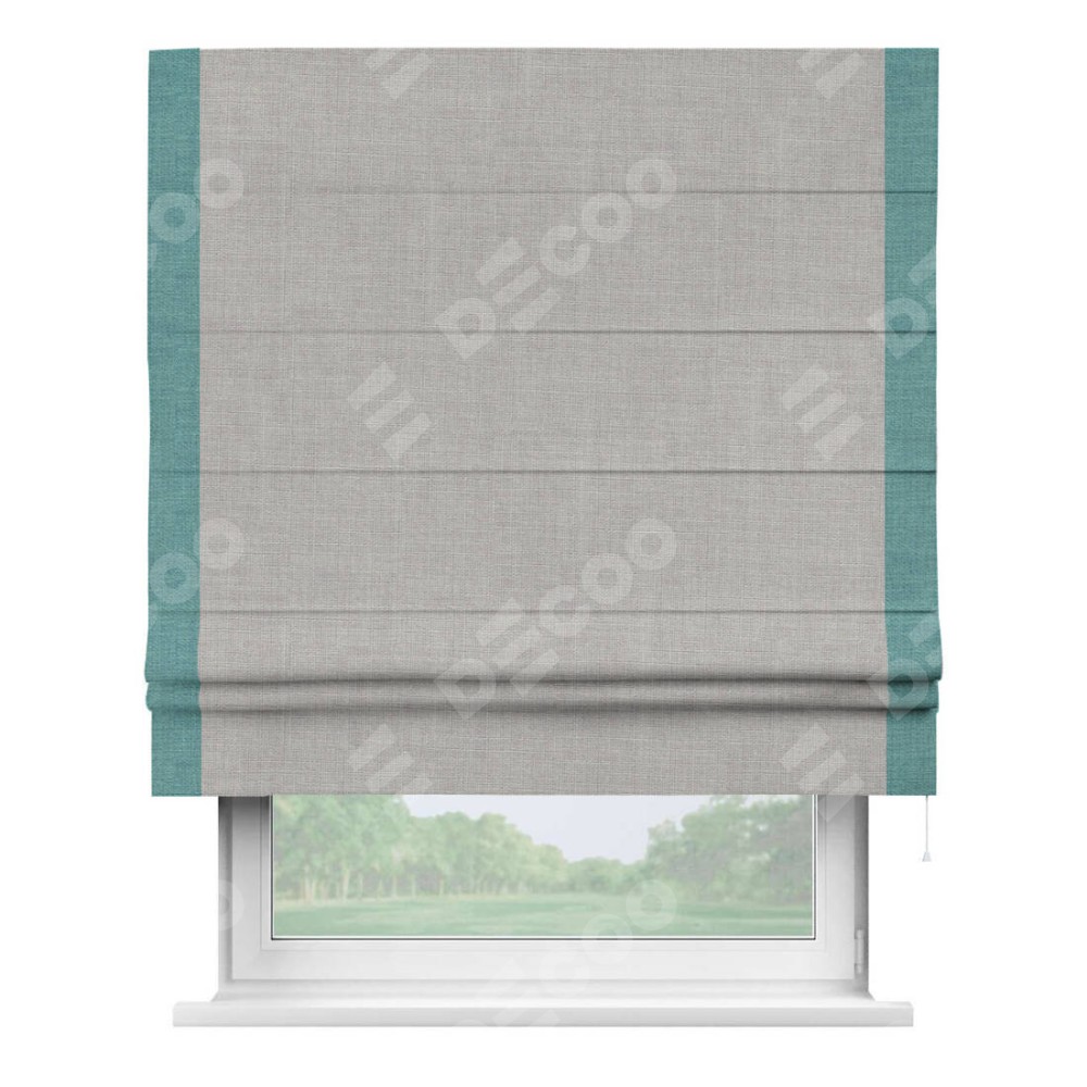 Римская штора «Кортин» для проёма, лён серый, с кантом Стрим Дуо