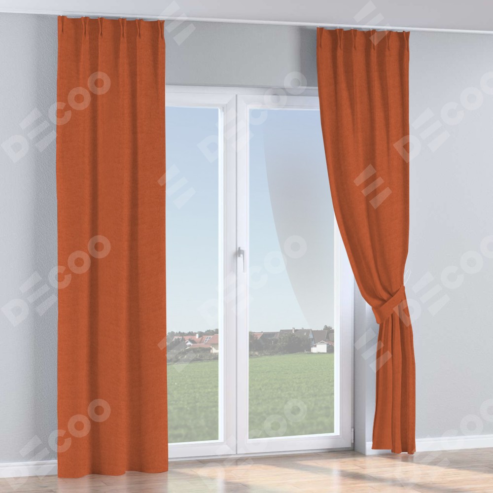 Комплект прямых штор, от производителя «Cortin», пошиты из ткани канвас терракотовый, артикул ткани v-107. С изнаночной стороны в верхней части штор пристрачивается шторная лента с декоративными складками «Кустик». Для создания элегантных складок рекомендуемый коэффициент 1:2 (на 100 см. ширины проёма 200 см. ширины ткани). Важно! Ширина штор указана без учёта коэффициента сборки!