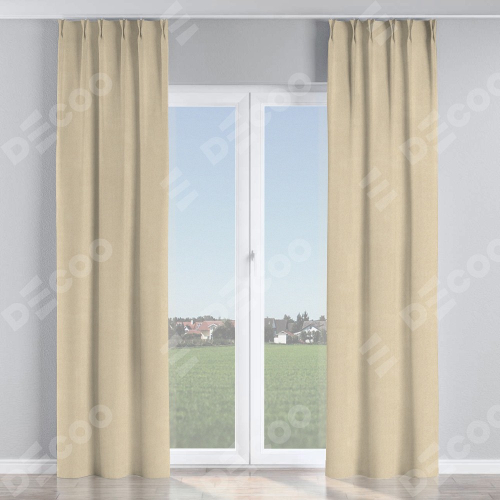 Комплект прямых штор, от производителя «Cortin», пошиты из ткани однотонный блэкаут кофейно-бежевый, артикул ткани 91566−1. С изнаночной стороны в верхней части штор пристрачивается шторная лента с декоративными складками «Кустик». Для создания элегантных складок рекомендуемый коэффициент 1:2 (на 100 см. ширины проёма 200 см. ширины ткани). Важно! Ширина штор указана без учёта коэффициента сборки!