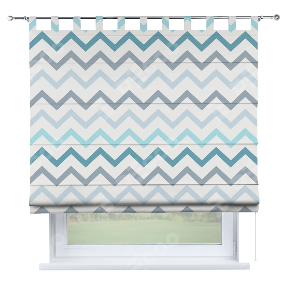 Римская штора производителя «Cortin», используется для проёма, пошита из ткани блэкаут с нанесением сублимационной печати «Небесный шеврон». Данная модель пошита на петлях, комплектуется на выбор круглым карнизом и подходит для монтажа на стену. Римская штора на петлях имеет простую систему регулировки высоты, отличительным преимуществом данной модели является простой способ монтажа. Достаточно повесить ее на трубу и штора готова!