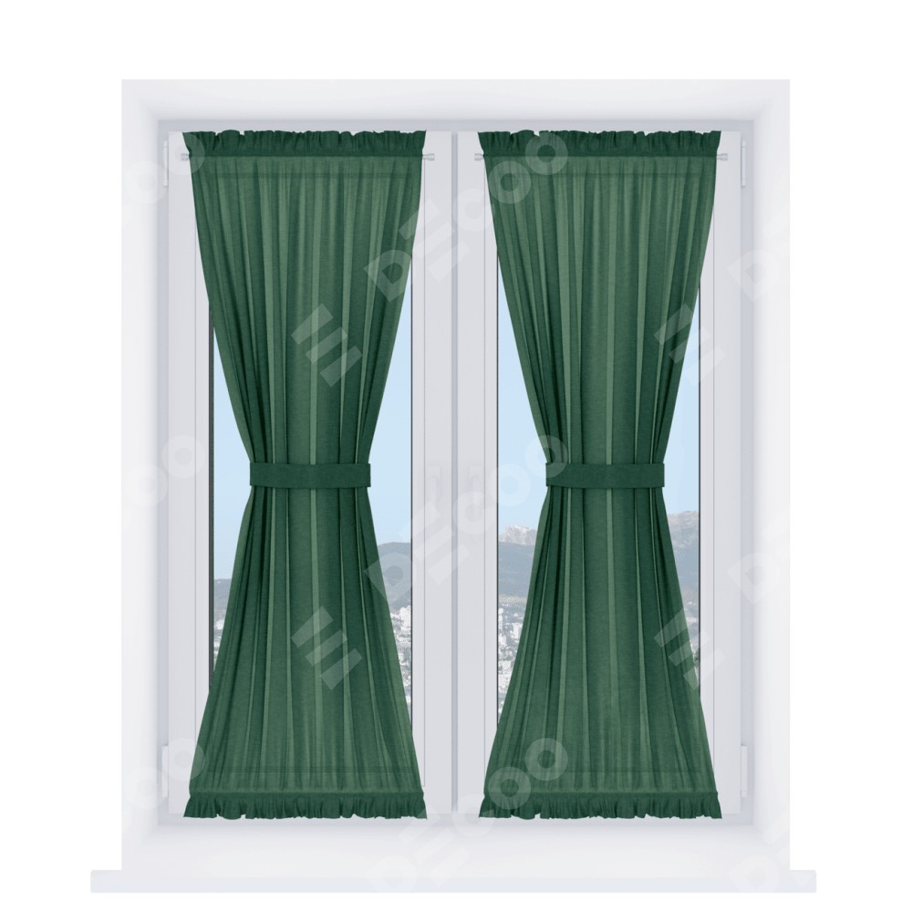 Штора «Песочные часы» производителя «Cortin», используется для створок окон и дверей, пошита из ткани лён серо-зелёный, артикул ткани 63740.