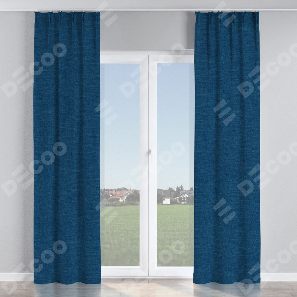 Комплект прямых штор, от производителя «Cortin», пошиты из ткани лён синий, артикул ткани 104496. С изнаночной стороны в верхней части штор пристрачивается шторная лента с декоративными складками «Кустик». Для создания элегантных складок рекомендуемый коэффициент 1:2 (на 100 см. ширины проёма 200 см. ширины ткани). Важно! Ширина штор указана без учёта коэффициента сборки!