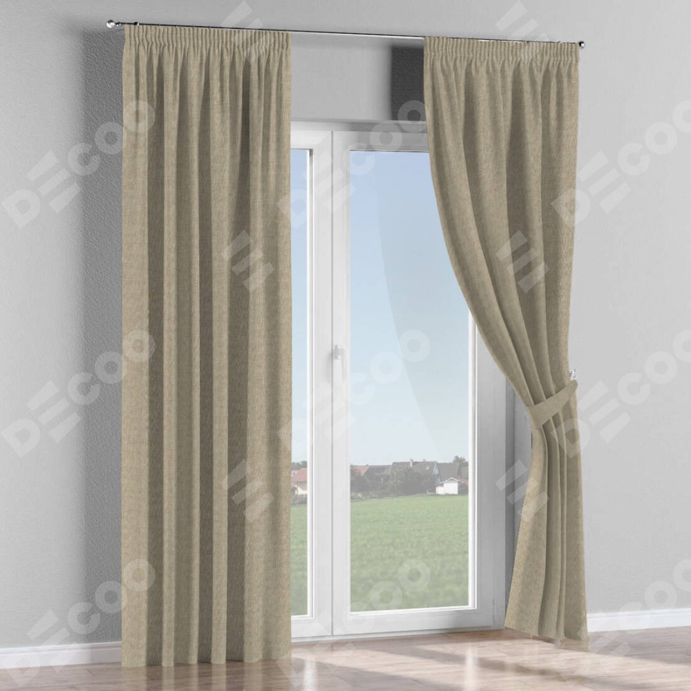 Комплект прямых штор, от производителя «Cortin», пошиты из ткани лён бежевый, артикул ткани 143839. С изнаночной стороны в верхней части штор пристрачивается шторная лента с декоративными складками «Карандаш». Для создания элегантных складок рекомендуемый коэффициент 1:2 (на 100 см. ширины проёма 200 см. ширины ткани). Важно! Ширина штор указана без учёта коэффициента сборки!