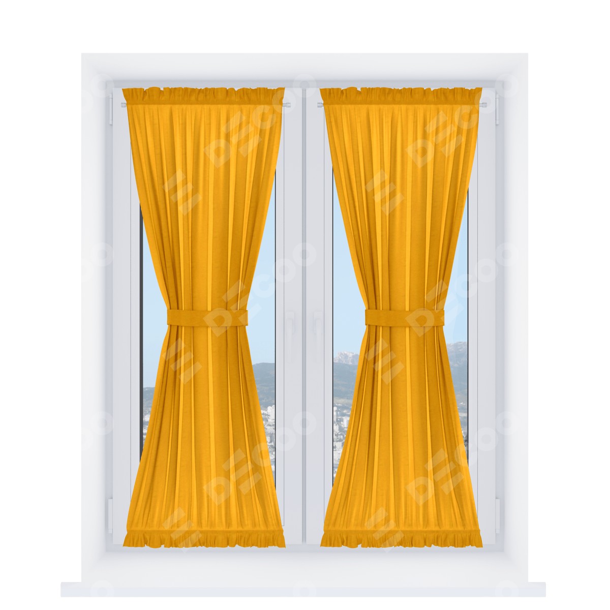 Штора «Песочные часы» производителя «Cortin», используется для створок окон и дверей, пошита из ткани вельвет желтый, артикул ткани 85547.