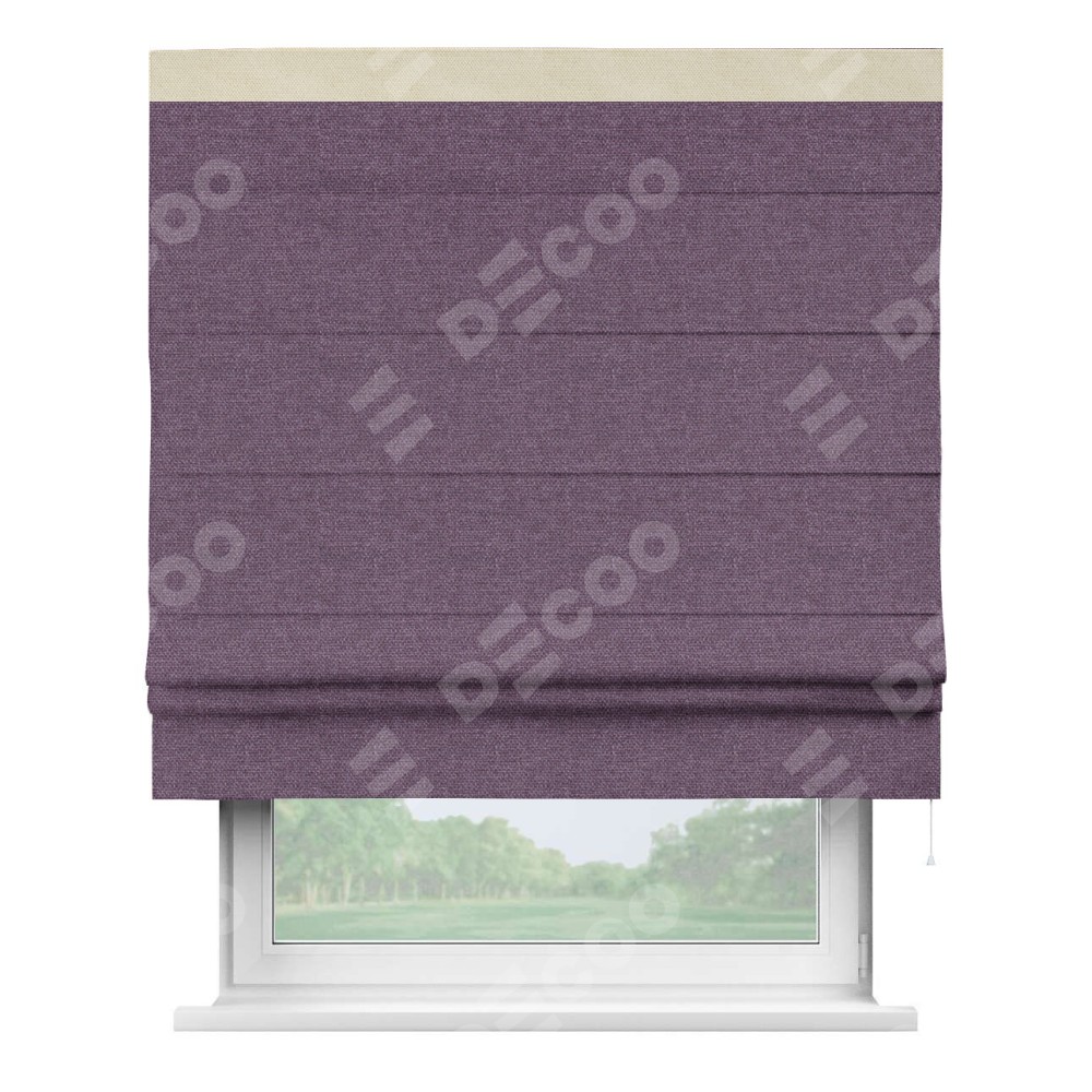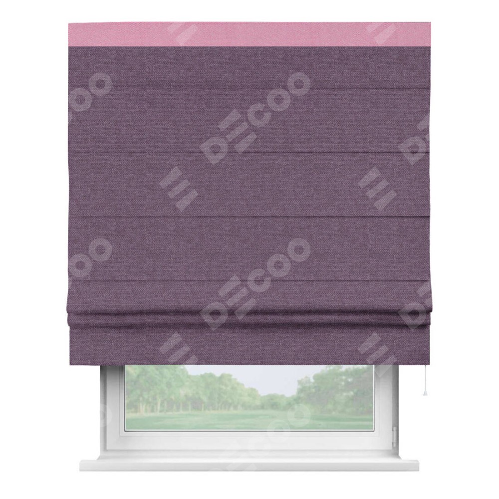 Римская штора производителя «Cortin», используется для проёма, пошита из ткани лён димаут брусника, артикул 16. Отделка шторы кантом «Кинг», ткань для канта используется из льна димаут разной расцветки на выбор. Имеет универсальный механизм и подходит для монтажа: на потолок, на стену и в нишу.
