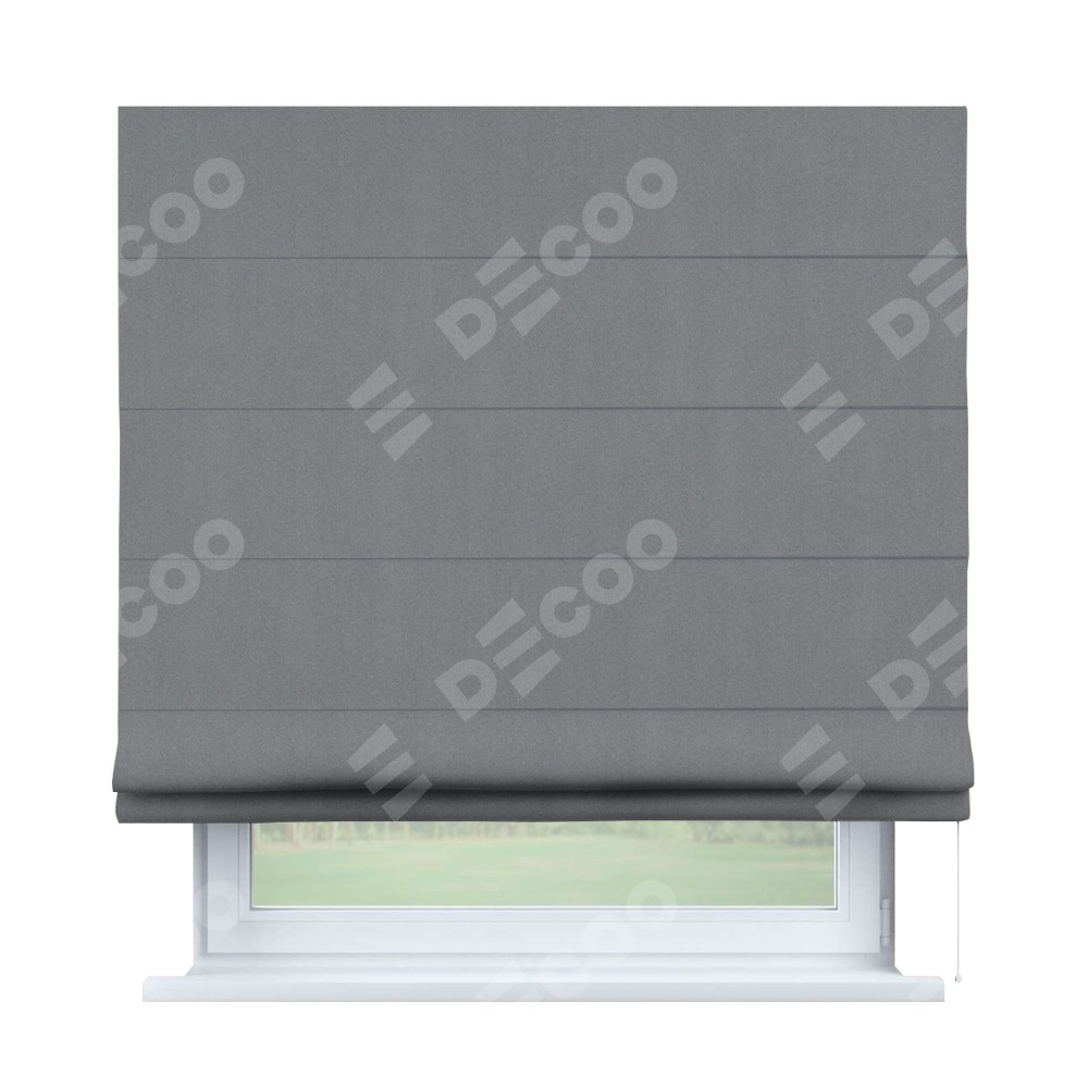 Классическая римская штора производителя «Cortin», пошита из ткани однотонный блэкаут серый, артикул: 146436. Имеет универсальный механизм и подходит для монтажа: на потолок, на стену и в нишу.