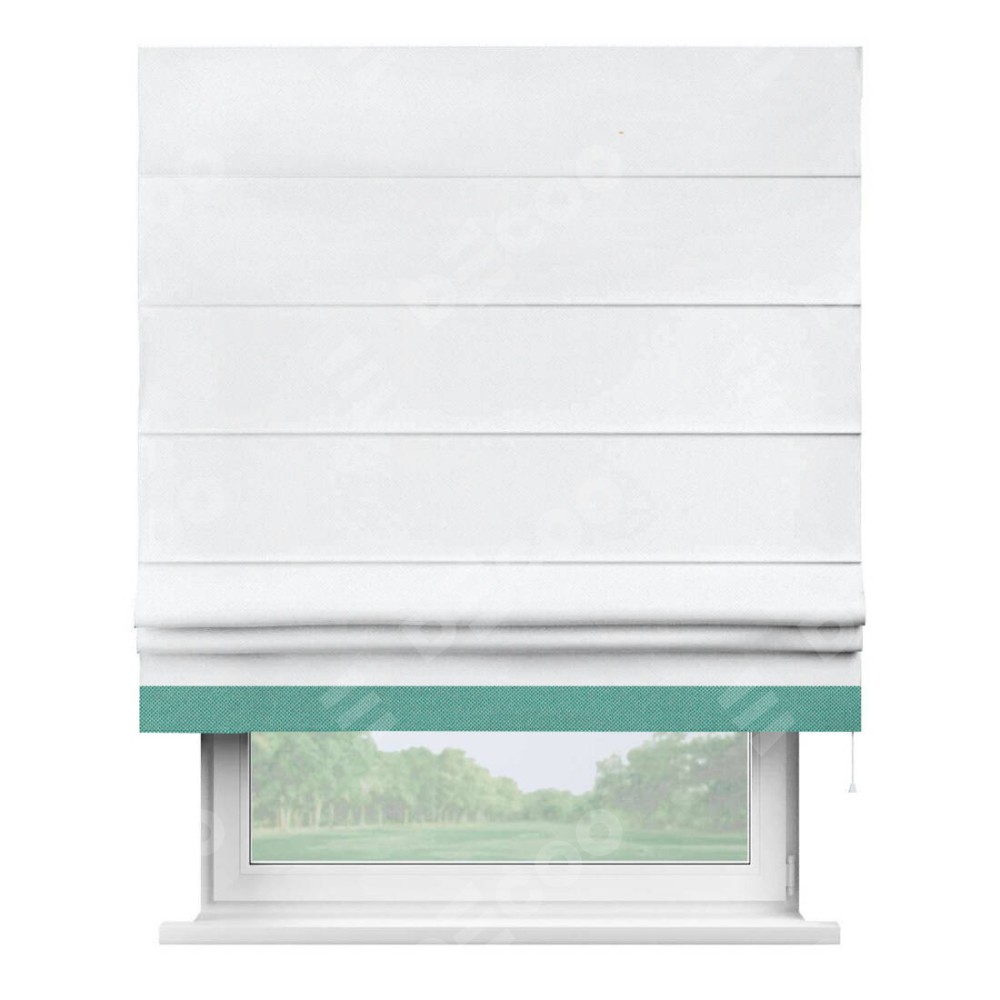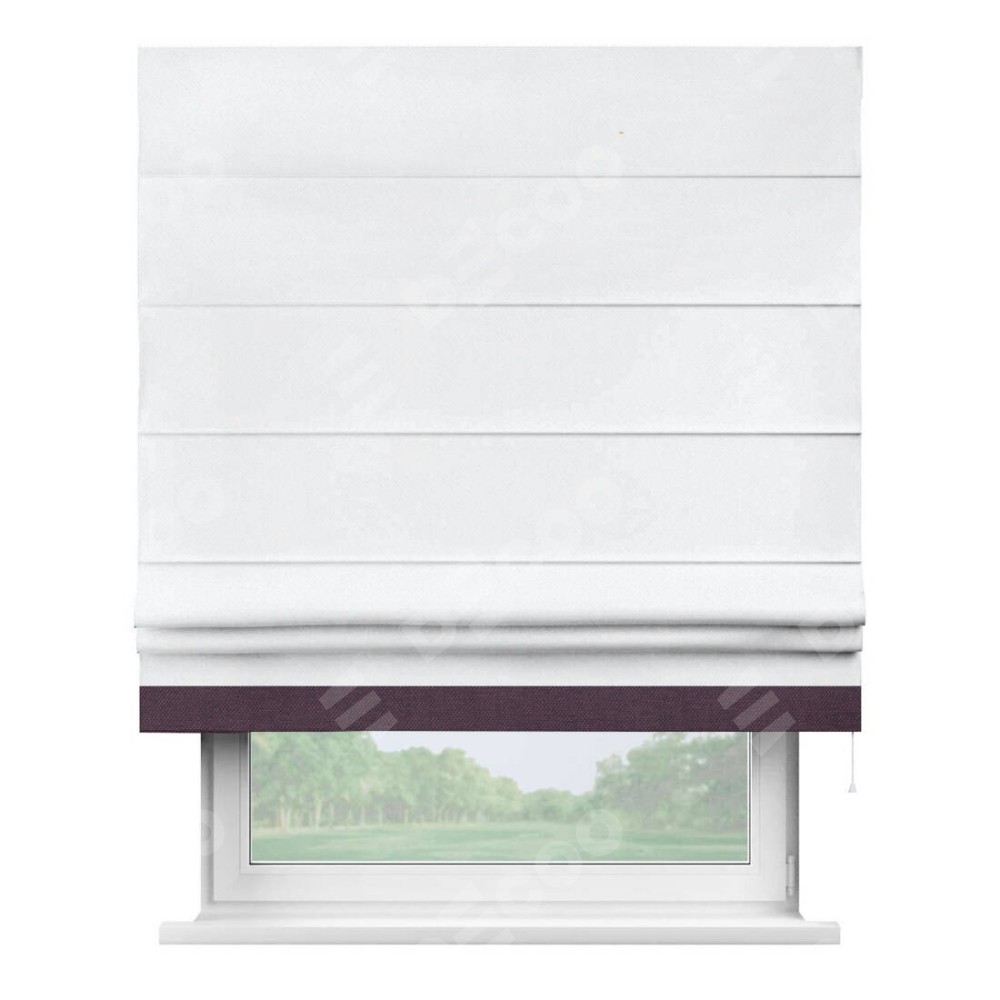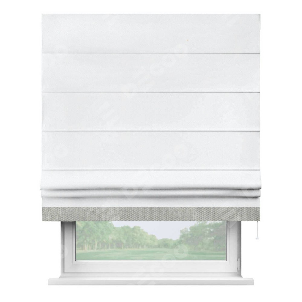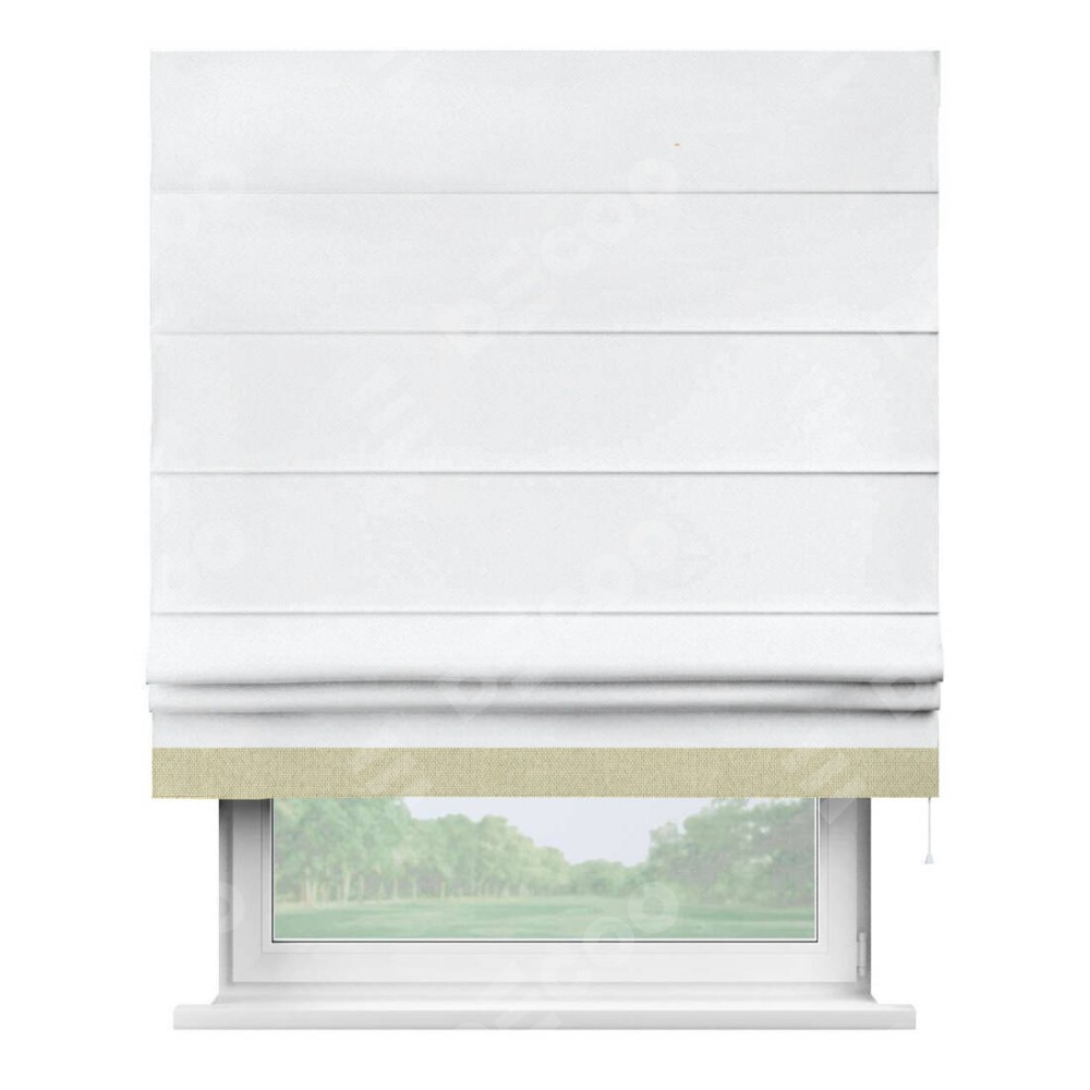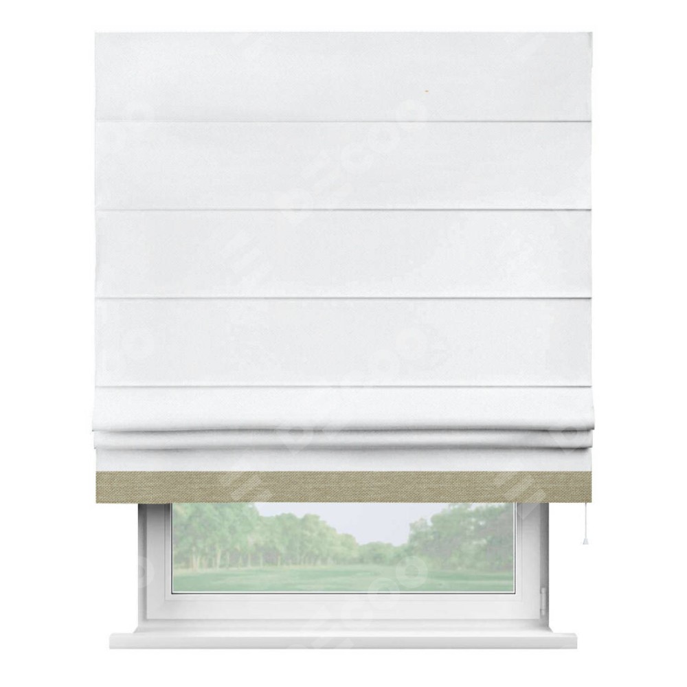 Римская штора «Кортин» для проема, лён димаут белый с кантом Джестер