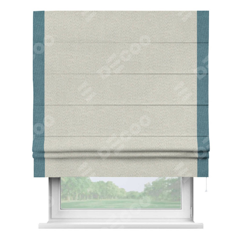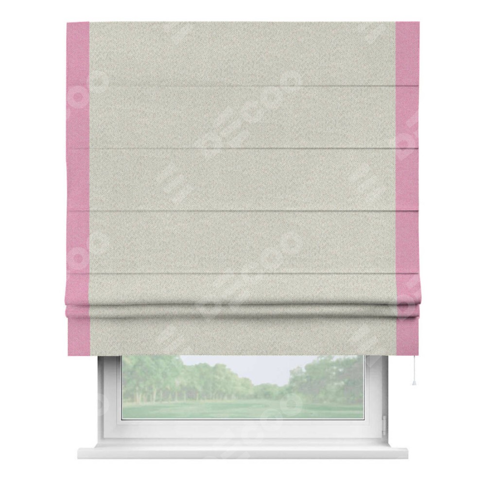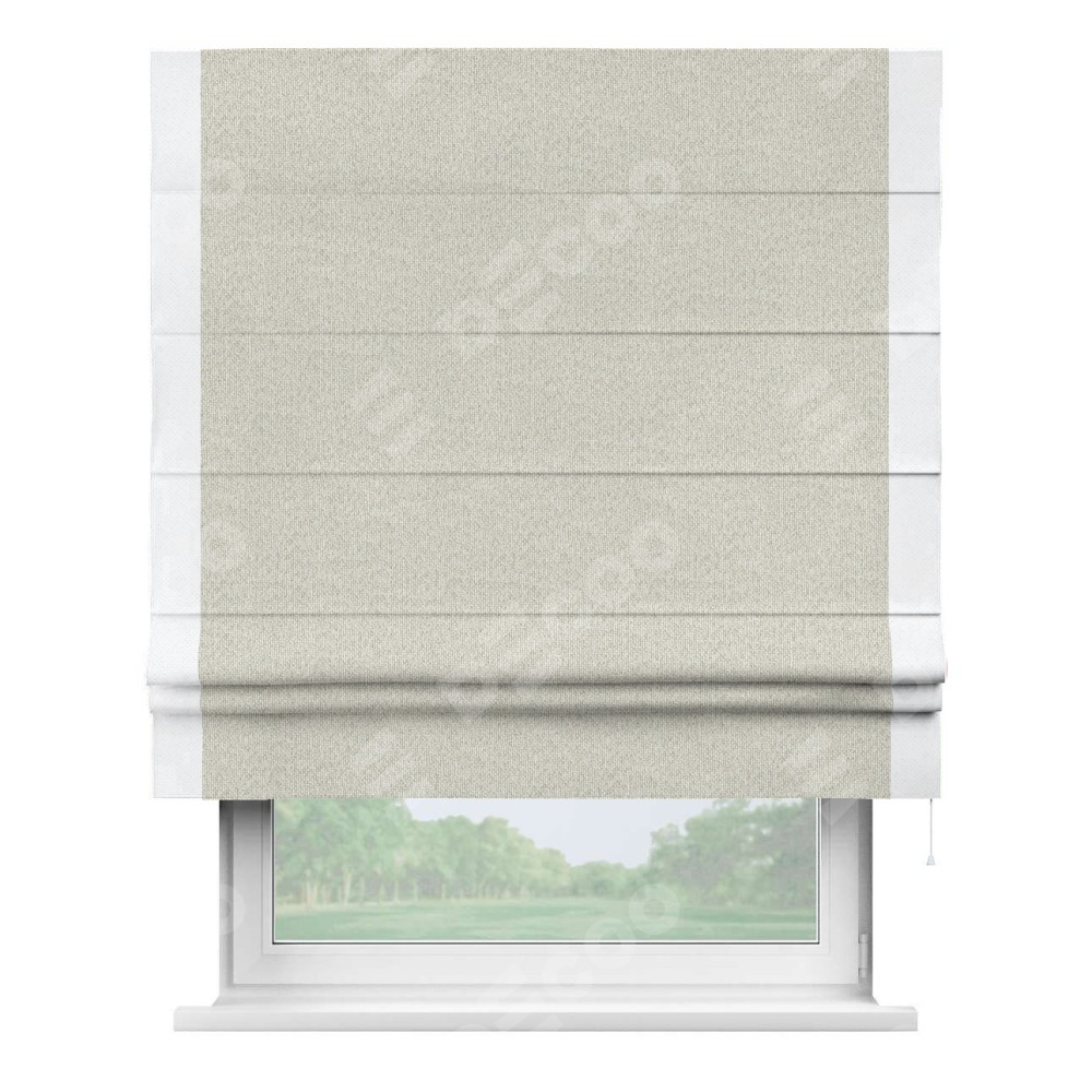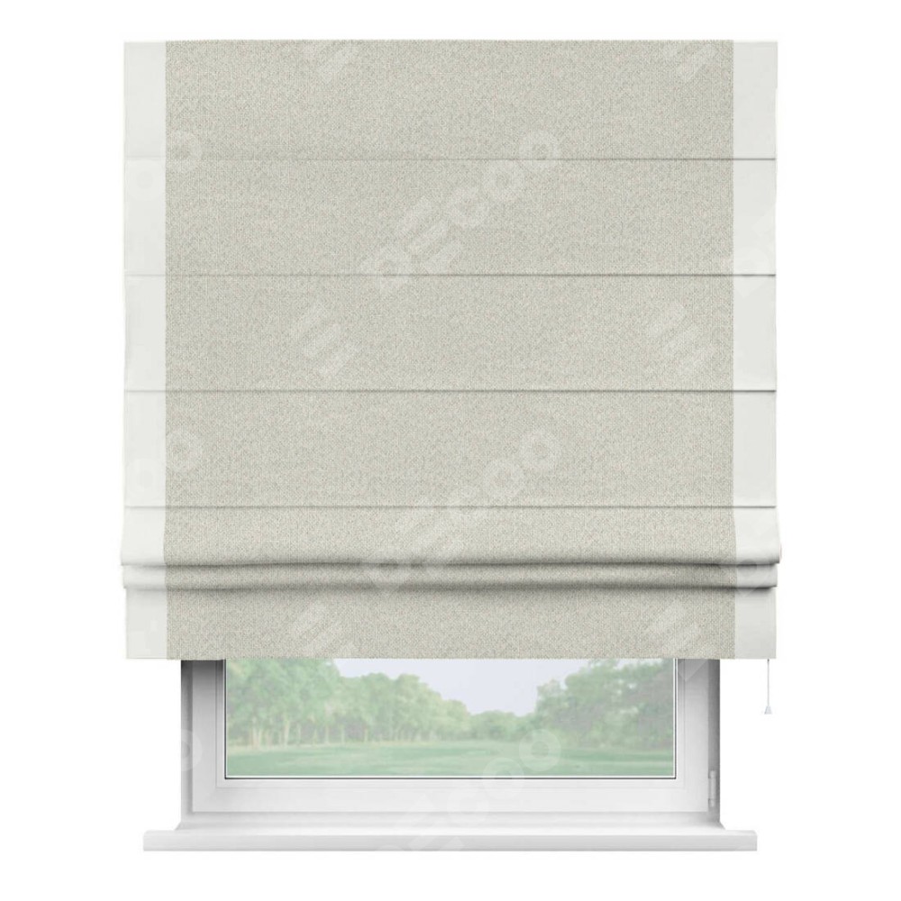 Римская штора «Cortin» для проёма, лён димаут светло-бежевый с кантом Стрим Дуо