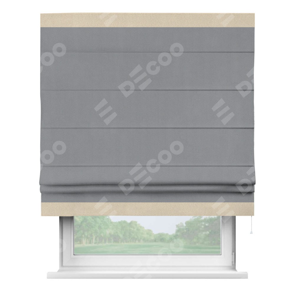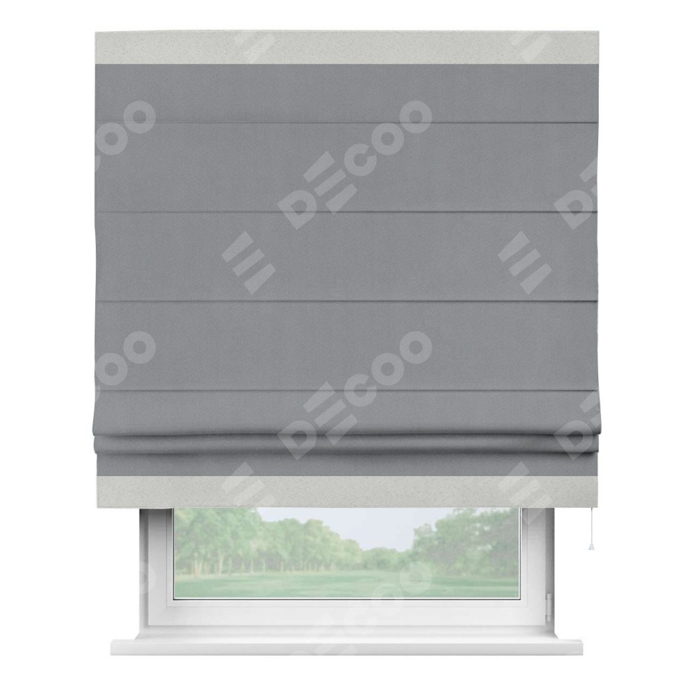 Римская штора «Кортин» для проема, блэкаут однотонный серый с кантом Горизонт