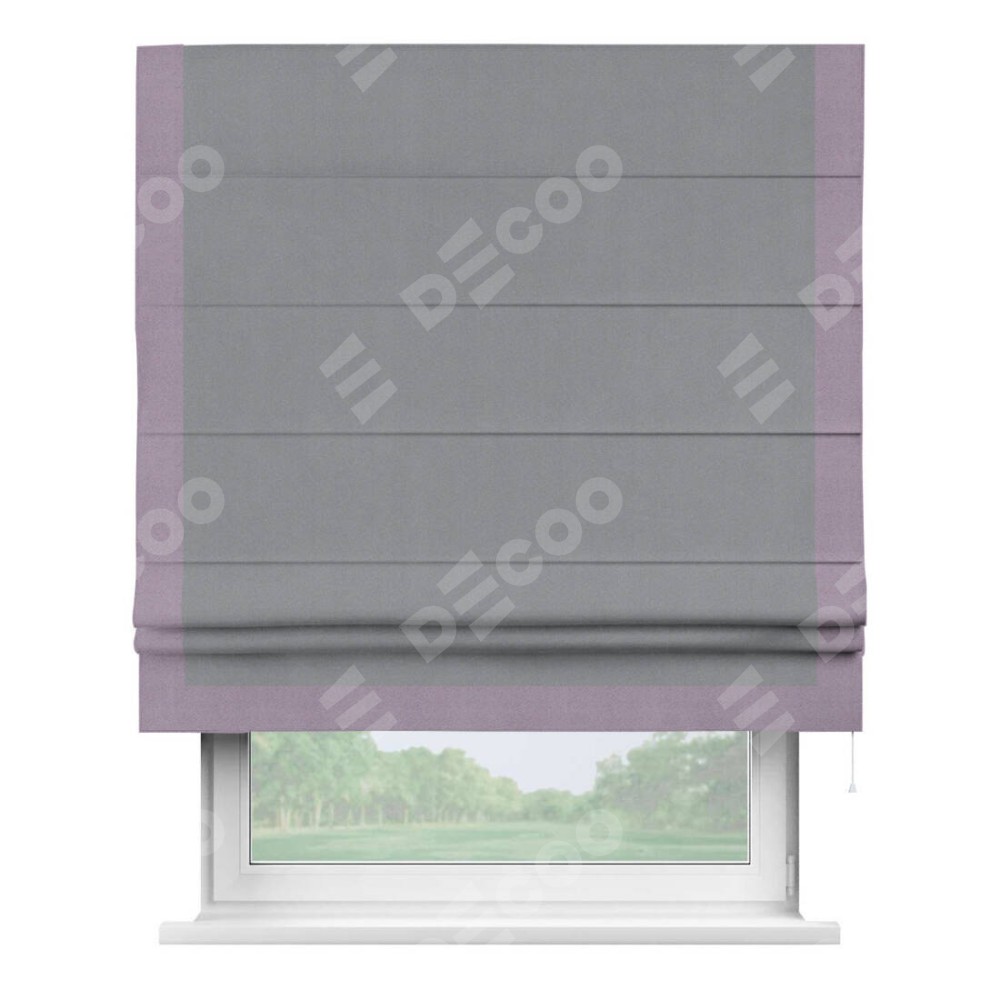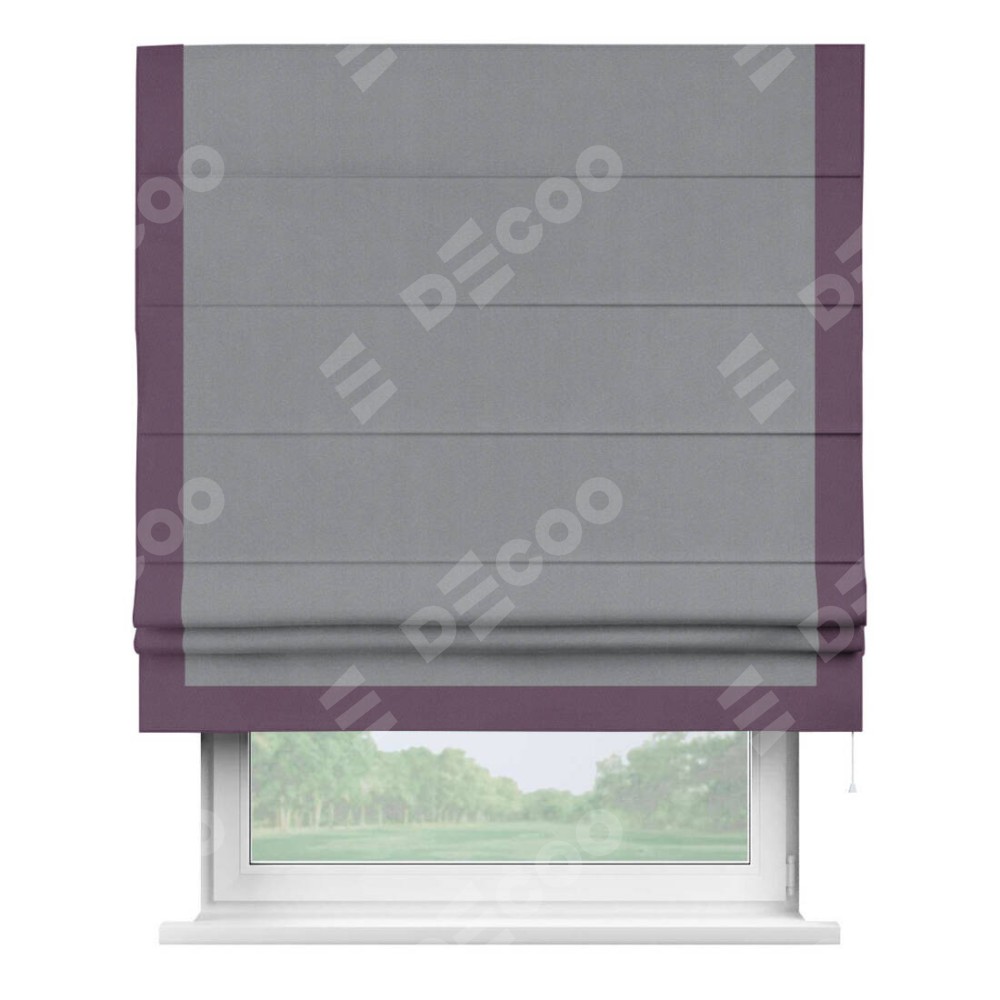 Римская штора «Кортин» для проема, блэкаут однотонный серый с кантом Виктория