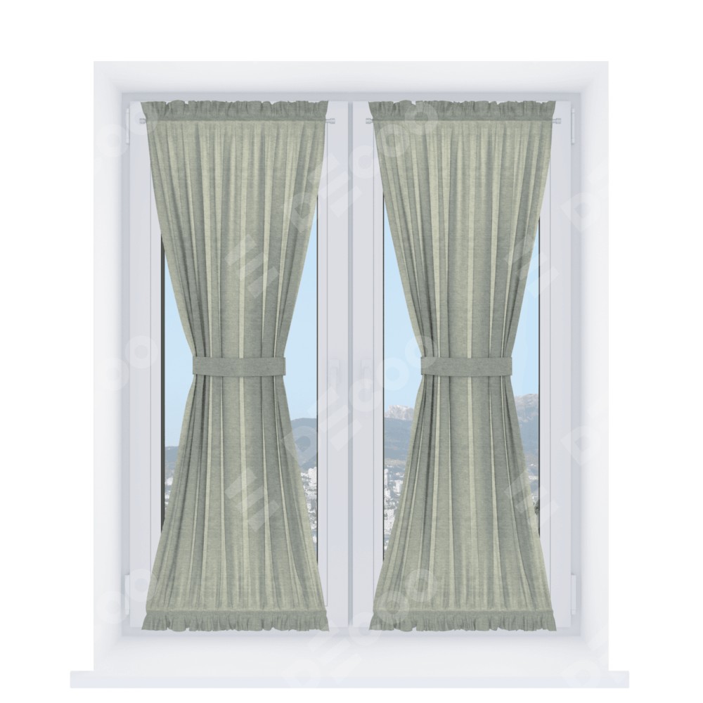 Штора «Песочные часы» производителя «Cortin», используется для створок окон и дверей, пошита из ткани лён кашемир серый new, артикул ткани 21618.