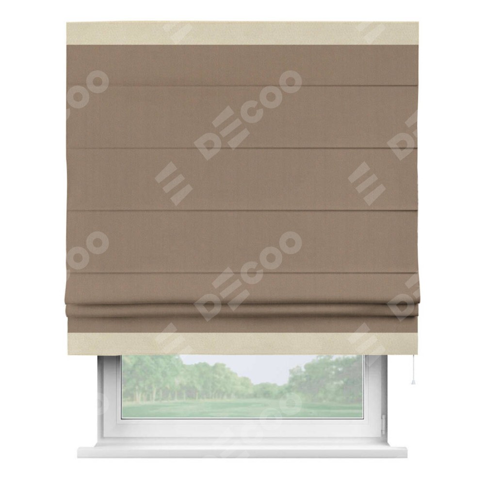 Римская штора «Cortin» для проёма, ткань блэкаут однотонный кофейно-бежевый с кантом Горизонт