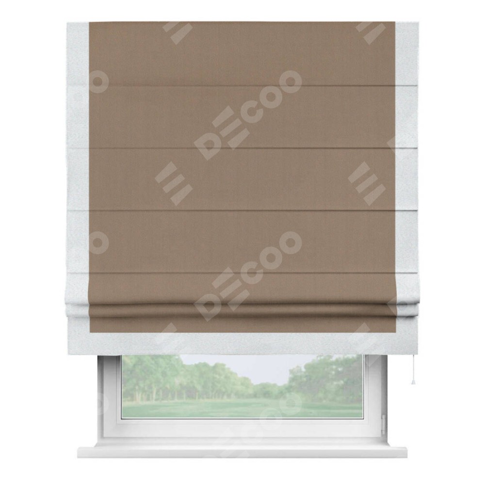 Римская штора «Cortin» для проёма, ткань блэкаут однотонный кофейно-бежевый с кантом Виктория